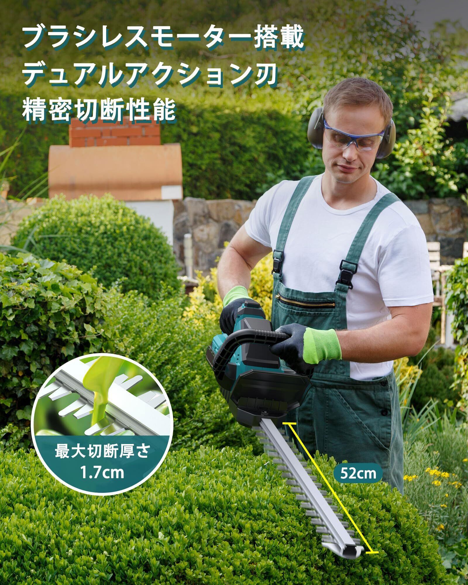 ヘッジトリマー 充電式 剪定トリマー 生垣バリカン ガーデントリマー ヘッジトリマー 植木バリカン 刈り込み幅 520mm· 切断径約17mm ダブルブレード 180°回転ヘッド 生垣剪定 枝切り 垣根 刈り込み機 庭木バリカン 草刈り機 草抜き 植木バリカン 18Vバッテリー対応 【本体のみ・バッテリー別売り】