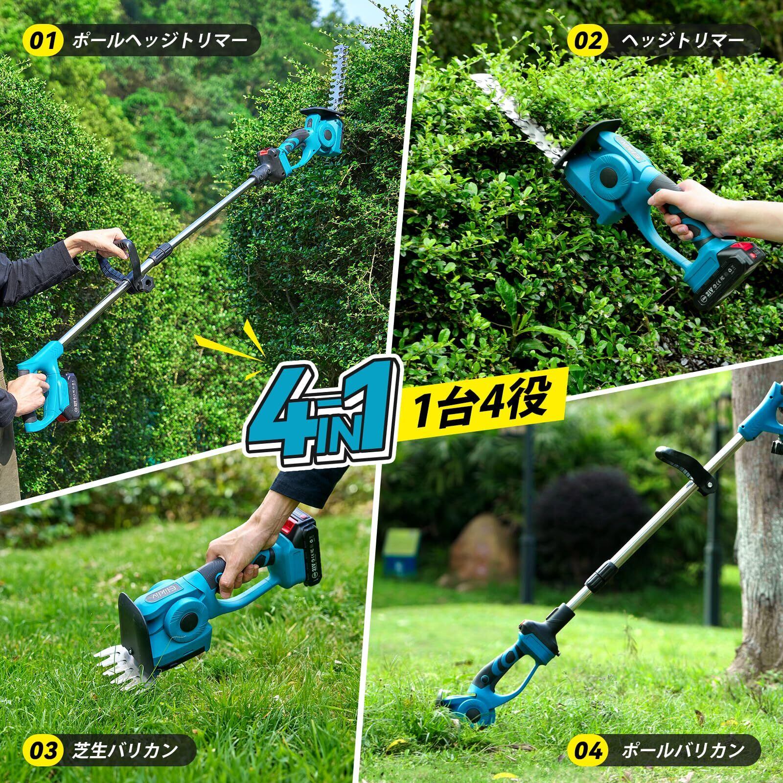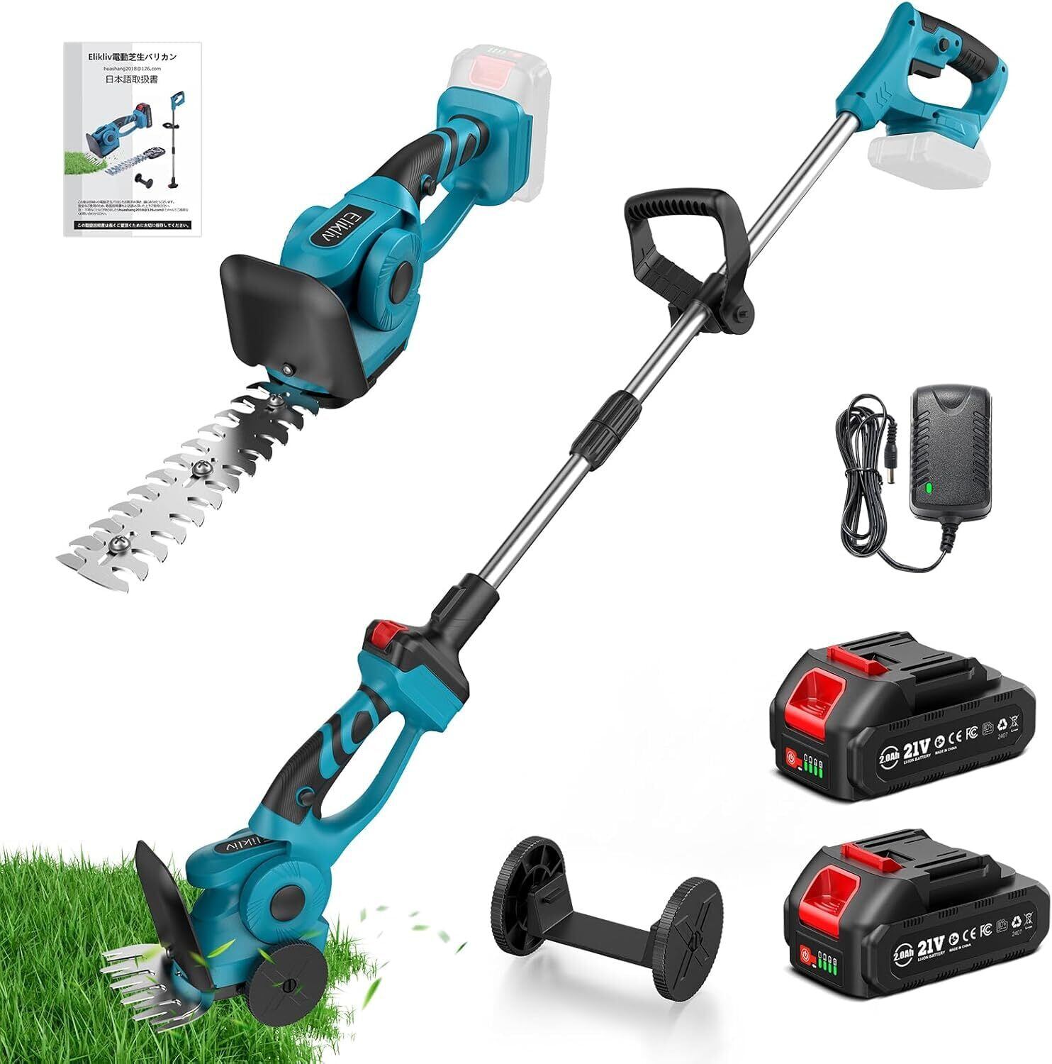 Elikliv 芝刈り機 電動 芝生バリカン 充電式ヘッジトリマー 剪定トリマー コードレス 1台4役 延長ポール無段階伸ばす トリマー刈幅220mmバリカン刈幅130mm 両刃駆動 刈込高さ調整15-25mm 二重安全ロック 軽量 生垣 園芸 植木 ガーデンバリカン 2個バッテリー付き | KSショップ
