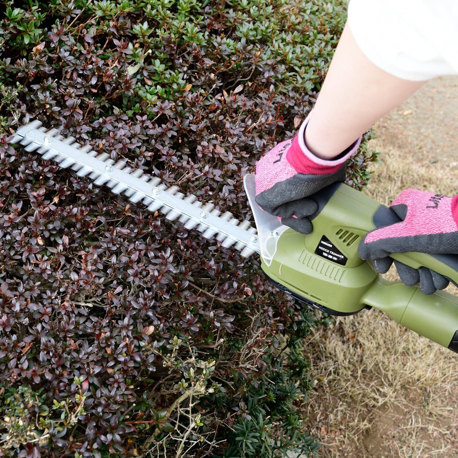 ●電動ヘッジトリマーだからお庭や生垣のお手入れも簡単、電気の力でモサモサした枝もバッサリ切れます。