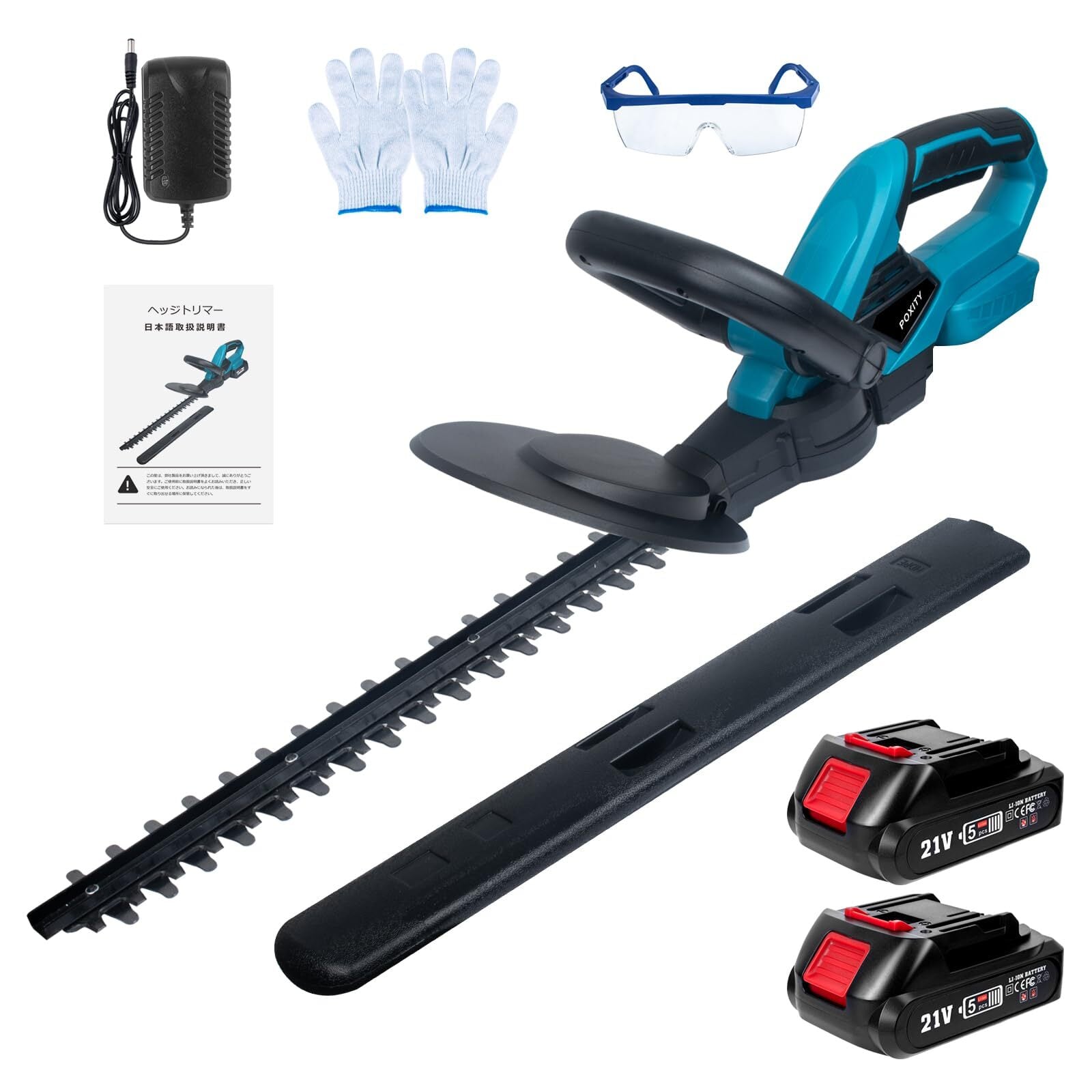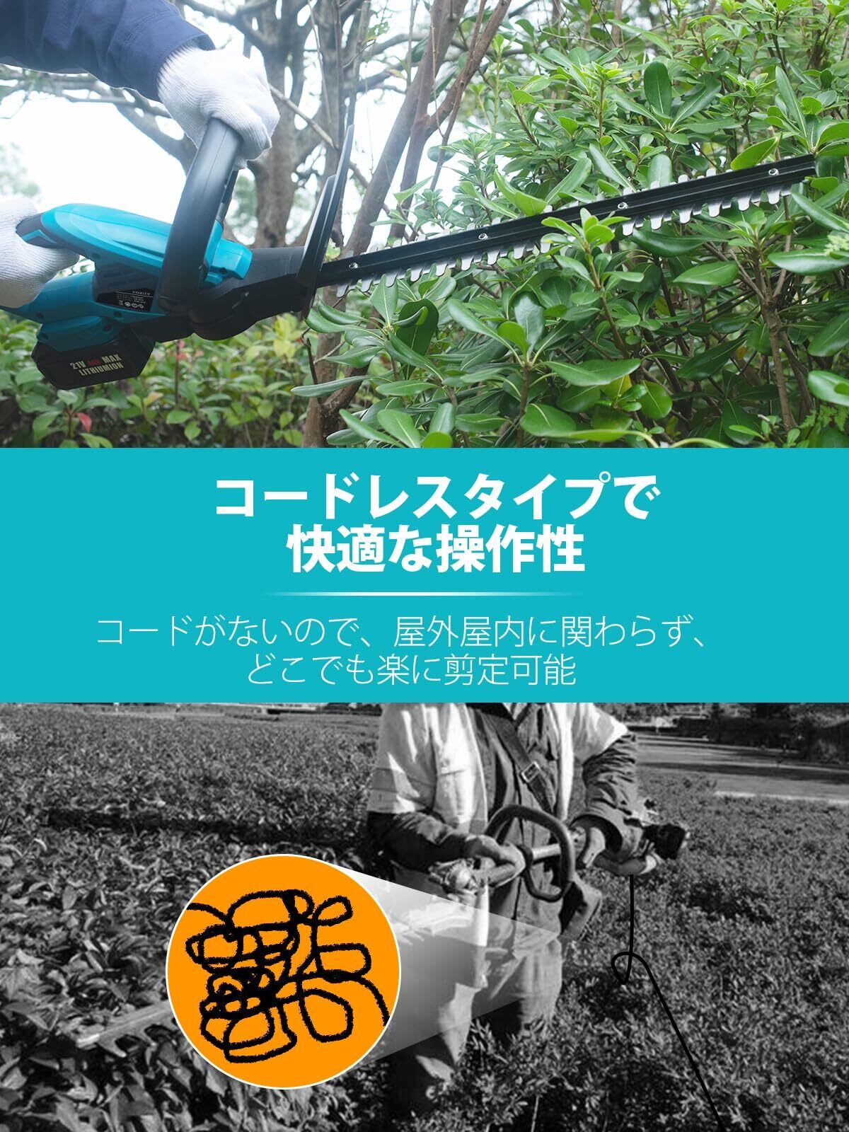 POXITY ヘッジトリマー 充電式 剪定トリマー 生垣バリカン 芝生バリカン マキタ18Vバッテリー互換 刈込幅410mm カット直径18mm 両刃駆動 植木 剪定 コードレス 電動 ヘッジトリマー 生垣刈り込み 枝切り 垣根 刈り込み機 庭木剪定 生け垣整え 【充電器・バッテリー2枚付き】 | KSショップ