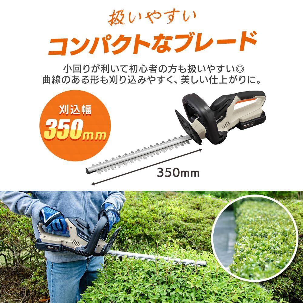 アイリスオーヤマ 充電式ヘッジトリマー 電動草刈り機 18V Type-C充電式 刈込幅350㎜ 切断径16mm 40分稼動 バッテリー付属 軽量 2.3kg JHT350TC サンドベージュ | KSショップ