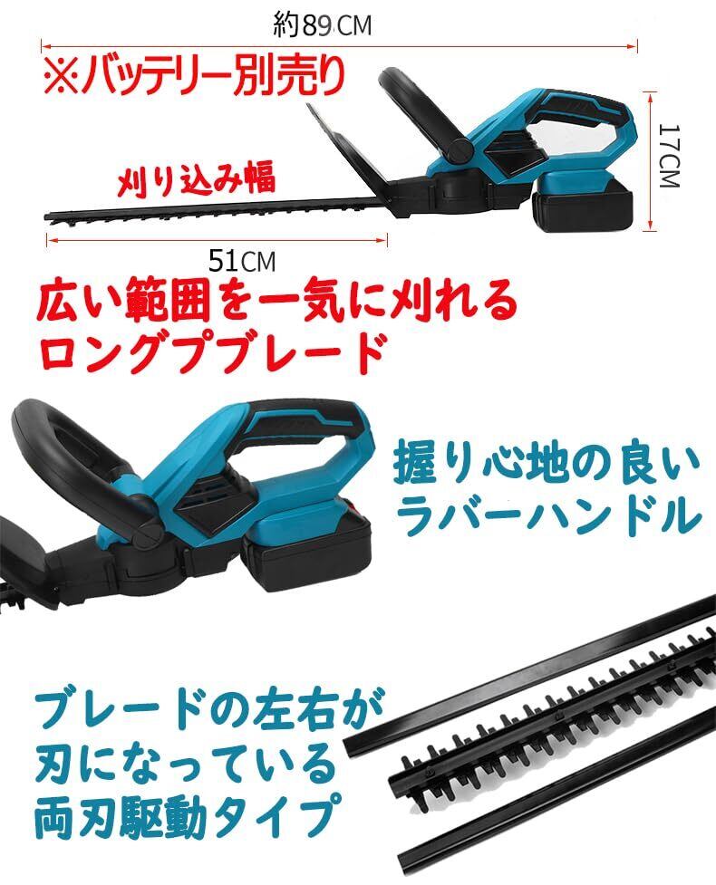 sozaka 充電式 ヘッジトリマー 18V ガーデントリマー 刈込幅510mm マキタ 18V バッテリー 互換対応 庭木バリカン 垣根 電動植木バリカン 本体のみ【バッテリー・充電器 別売】2年間メーカー | KSショップ
