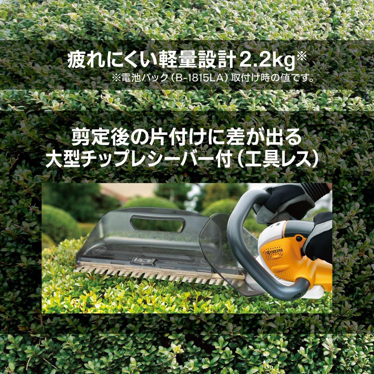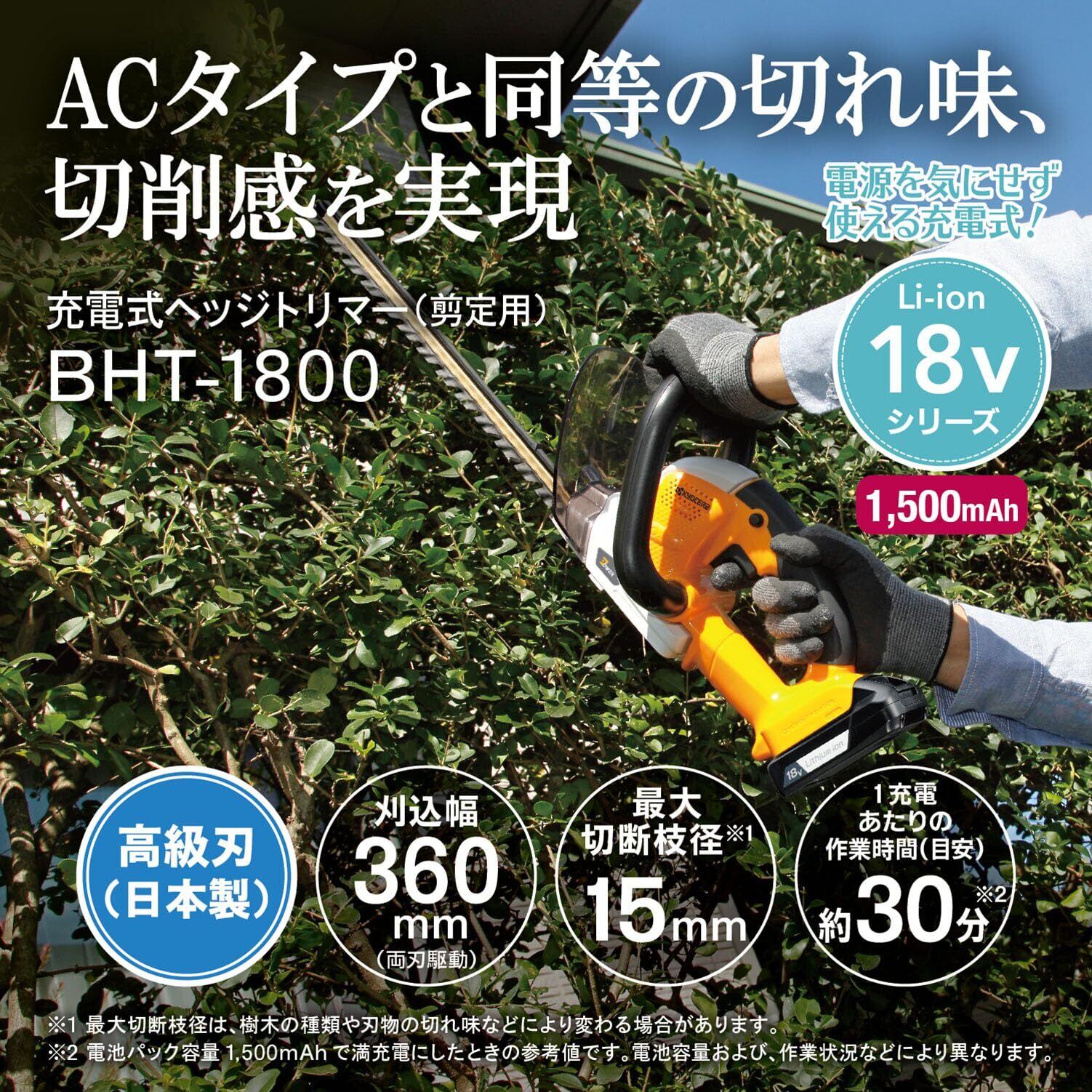 京セラ(Kyocera) 旧リョービ 充電式ヘッジトリマ BHT-1800 666051A 【超低振動で快適に剪定】全刃3面研磨で切れ味長持ち 高級刃 刈込幅360mm 両刃駆動 最大切断枝径15mm 連続使用時間30分 充電時間69分 リチウムイオン18V | KSショップ