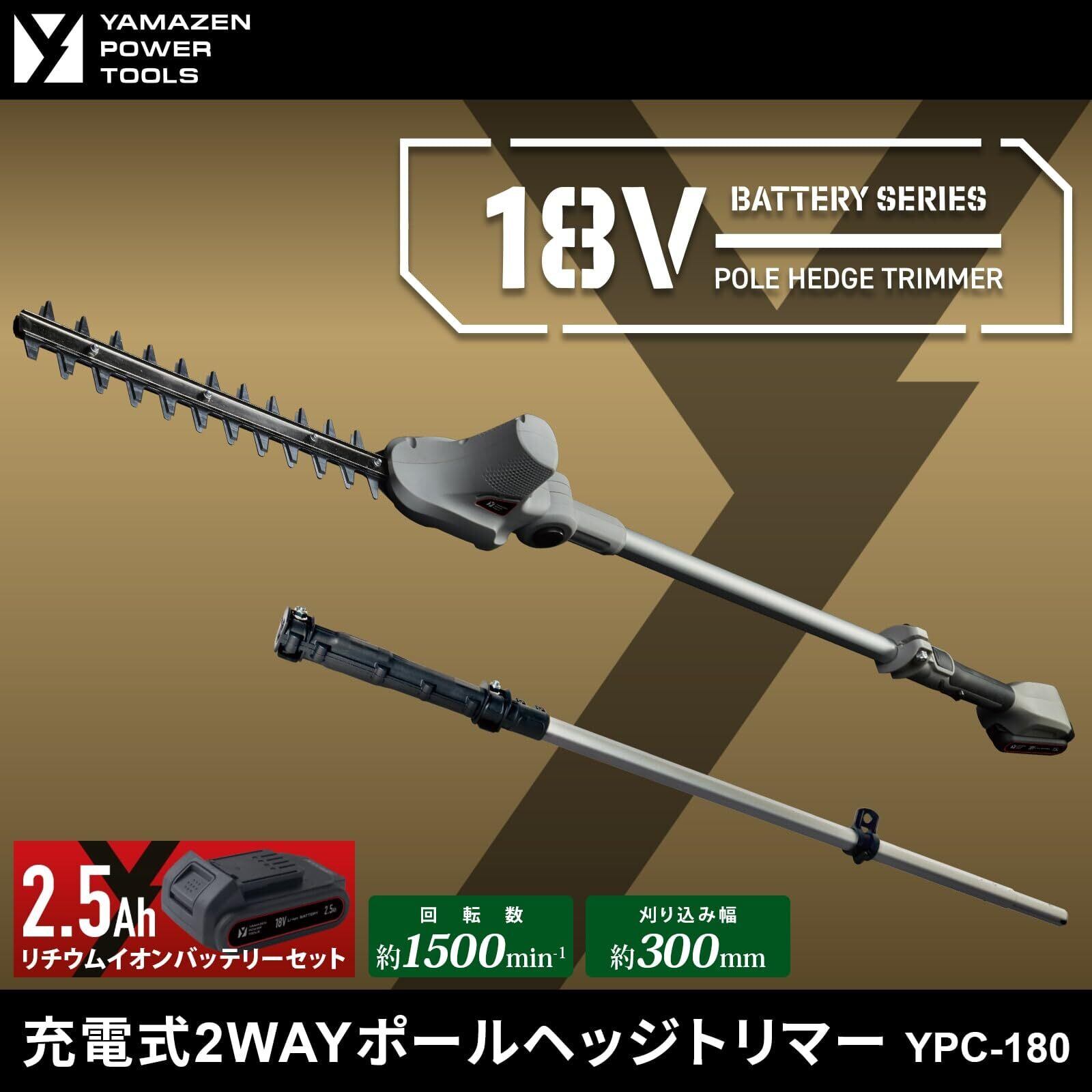 山善(YAMAZEN) 18V ヘッジトリマー 2WAYポールヘッジトリマー 充電式 18V 3点セット(本体+充電器+バッテリー 2.5Ah電池パック×1個) 刈込幅約300mm 両刃タイプ 庭木 剪定 生垣 刈り込み YPH-180+YCH-18V+YBP-1825 【18V共通バッテリーシリーズ】 | KSショップ