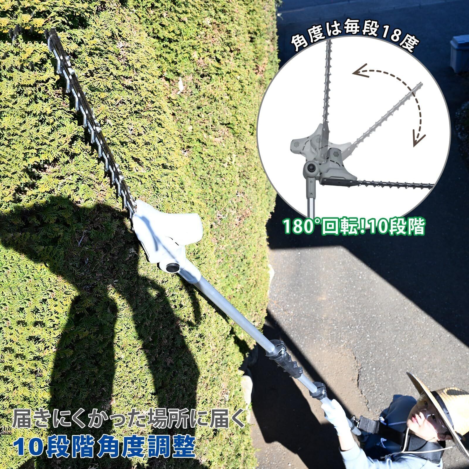 ●手の届きにくい高い位置の生垣や極めて幅の広い生垣の作業に使えるヘッジトリマー(充電式)です。