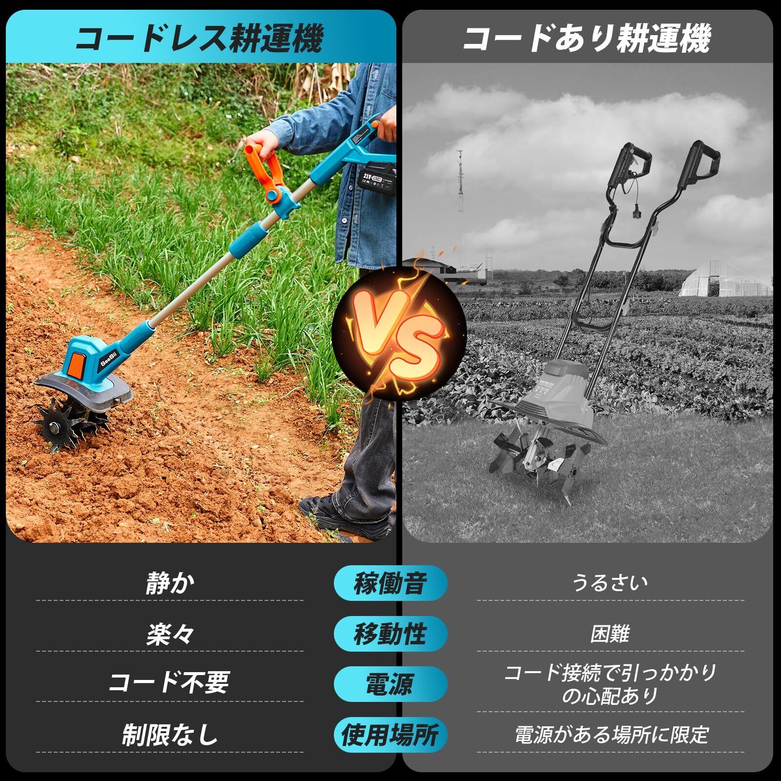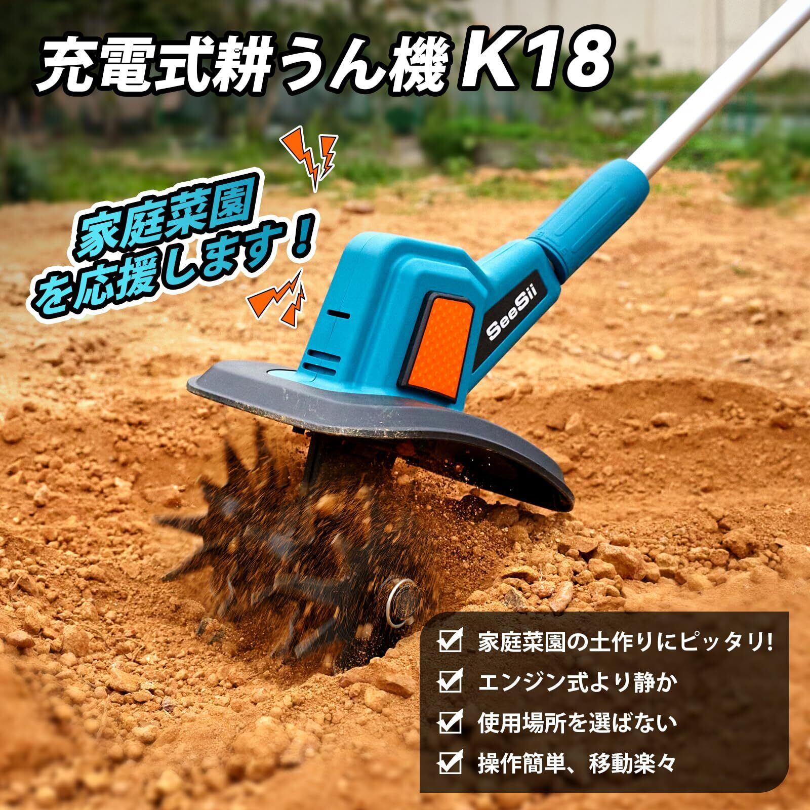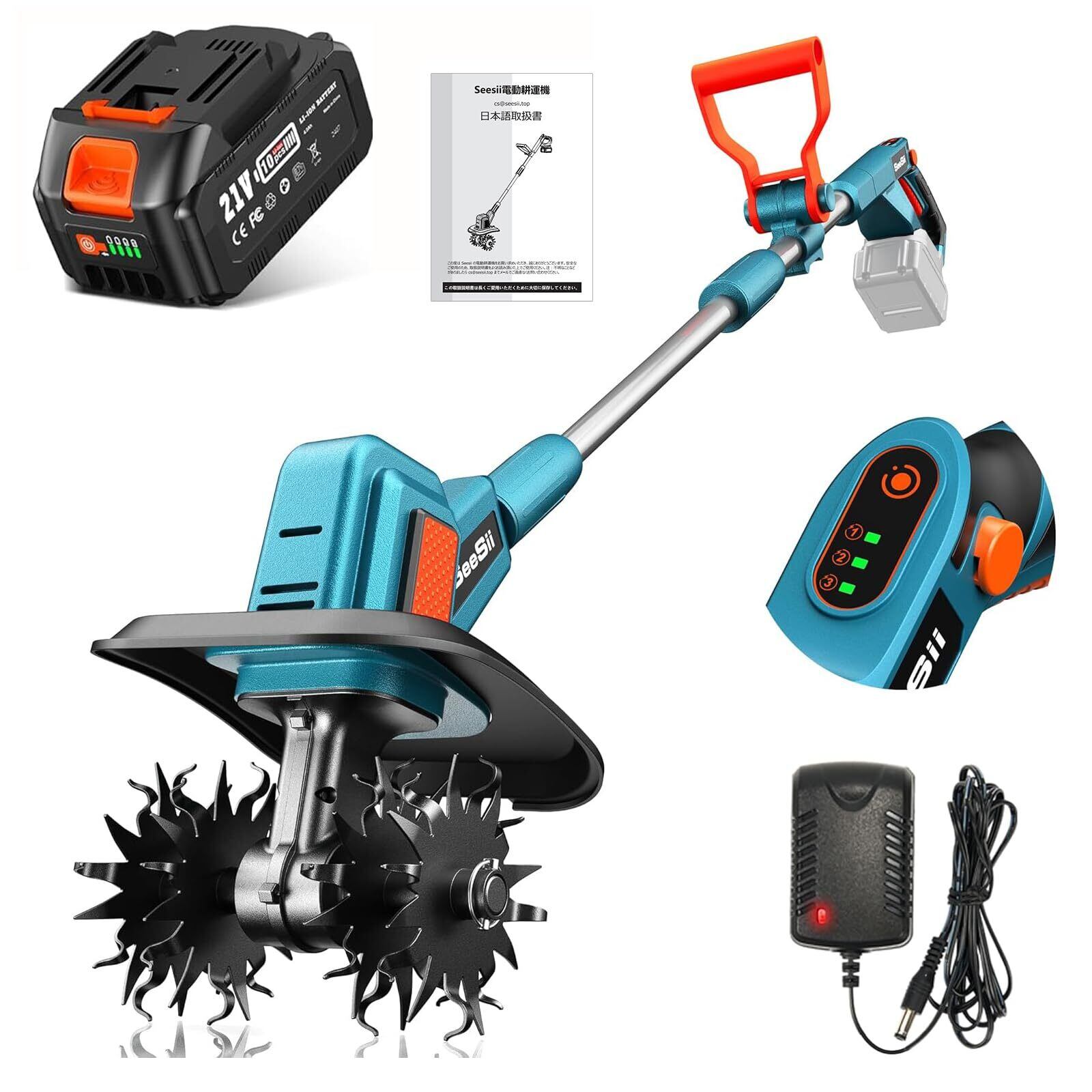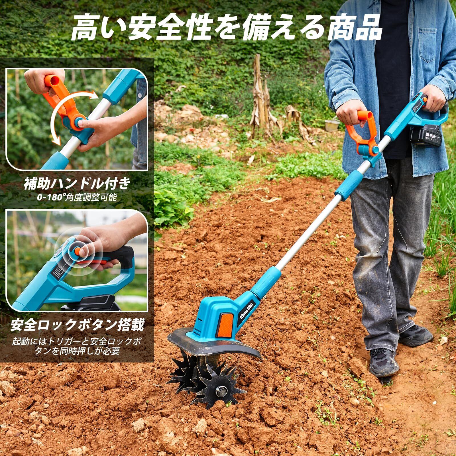 【2025新型】SEESII 電動耕運機 家庭用 耕うん機 充電式ミニ耕運機 コードレス 小型 種まき機 3段階変速 4 枚刃 強力 ハイパワー 耕うん機 畑 菜園 耕す 農機具 耕運幅225mm マキタ 18v バッテリー 4.0Ahバッテリ・日本語説明書付き | KSショップ