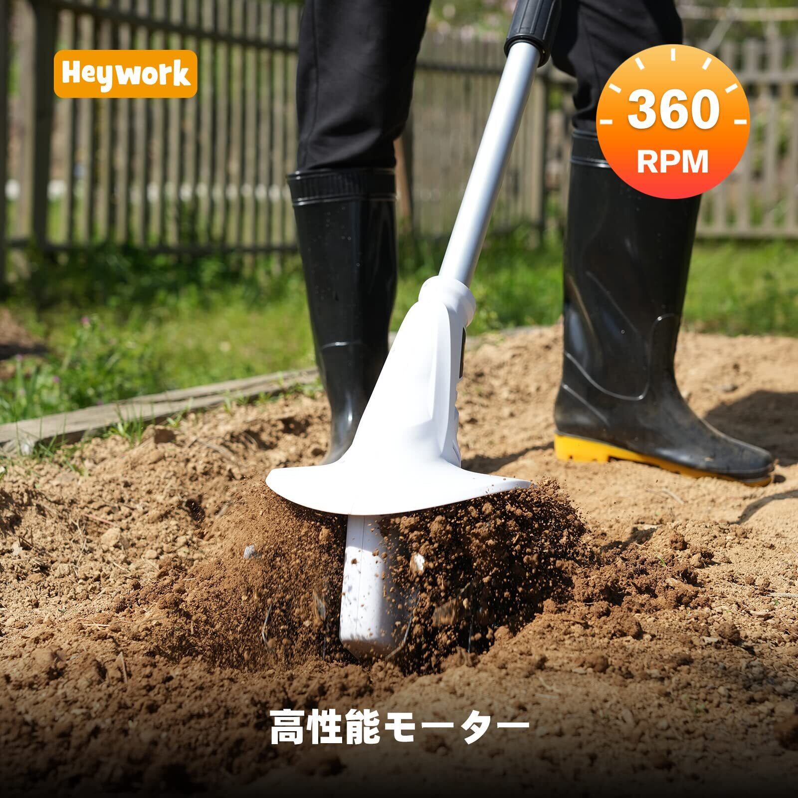 [コードレス設計]Heywork耕うん機はコードレス設計で、充電式バッテリーを使用することで、どこでもいつでも使用できます。もつれたコードにさようなら、便利な使用を手に入れましょう。