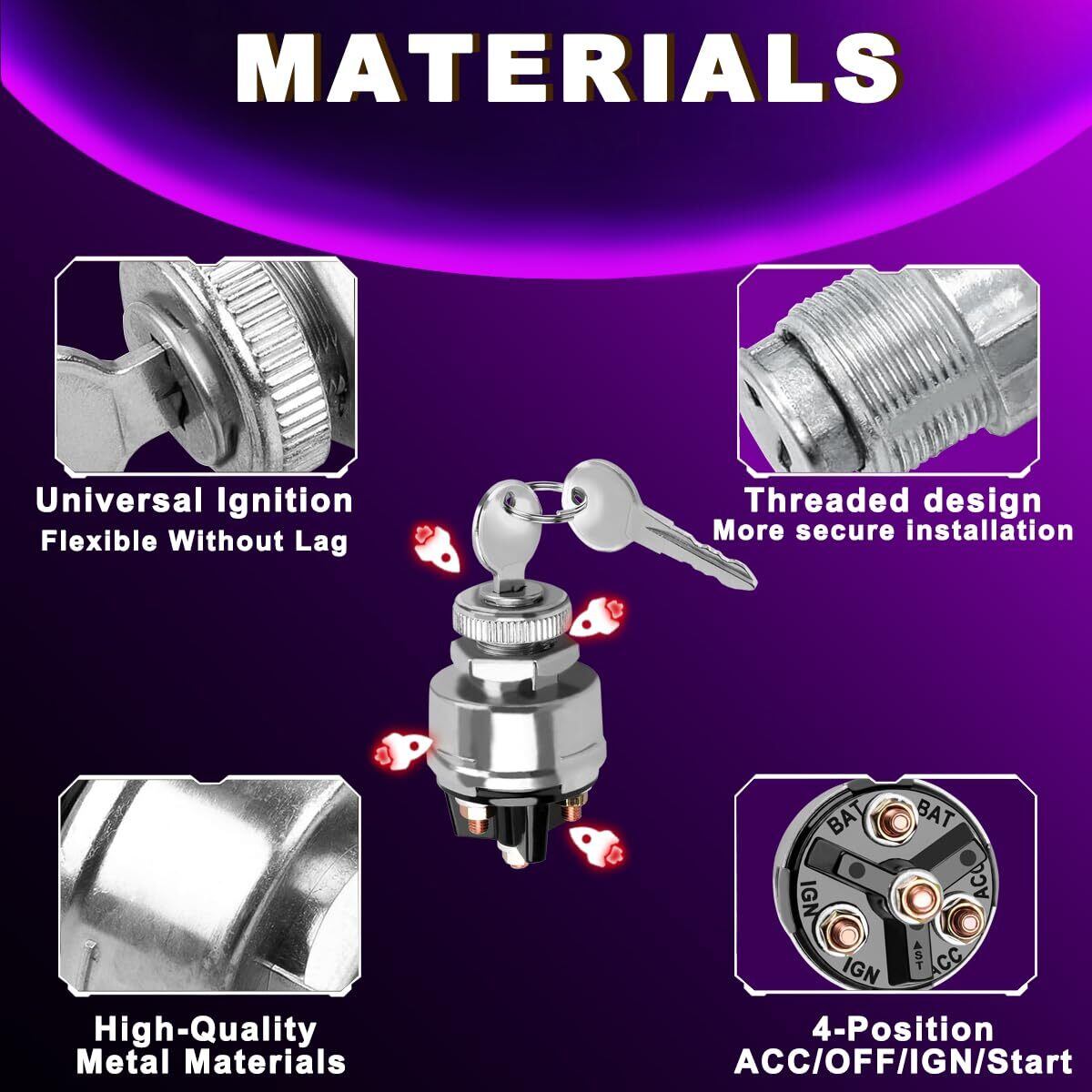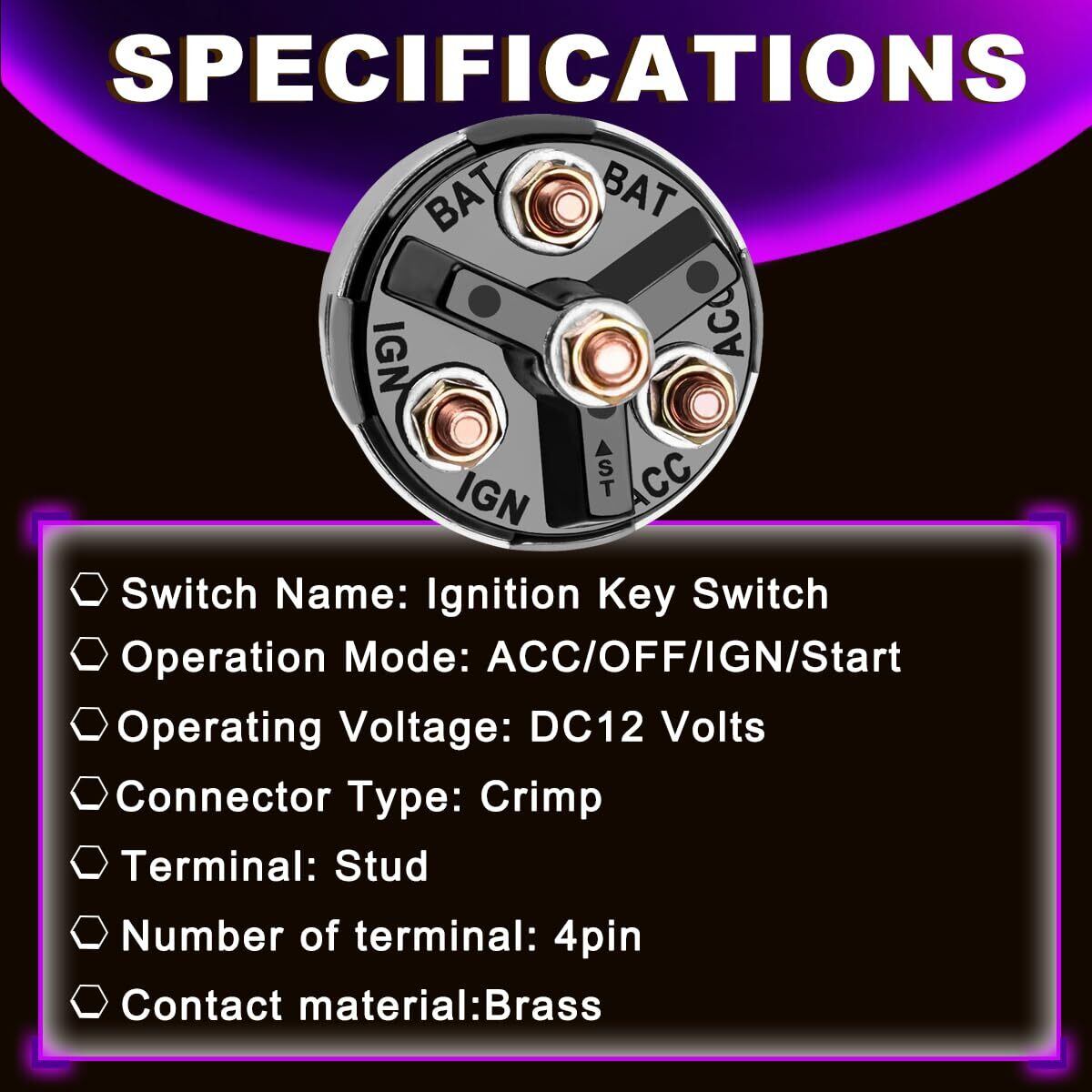 【幅広い用途】イグニッション キー スイッチは、12V 車、トラック、トラクター、トレーラー、フォークリフト、自動車、ウッドチッパー、オートバイ、船舶、農業および屋外機器などに幅広く使用されています。