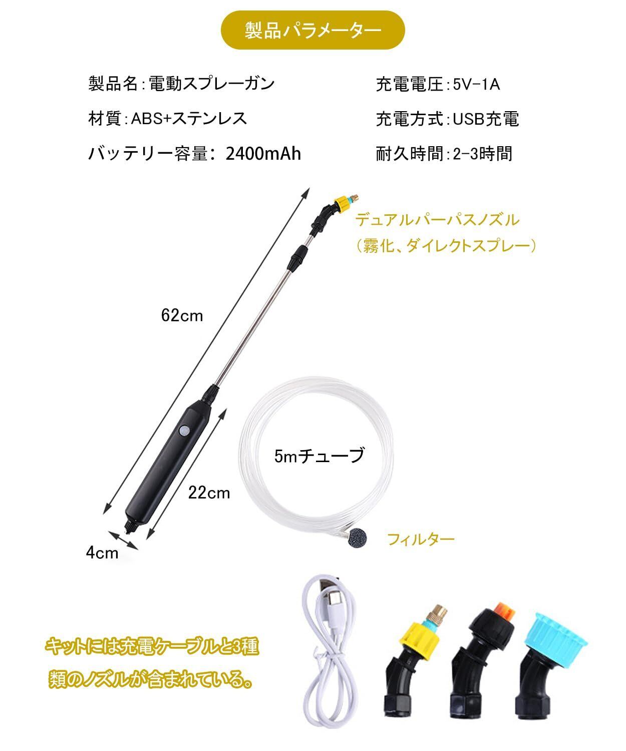 BTtime 電動噴霧器 充電式 電動スプレー 2400mAh 3種類のノズル 5M吸水ホース 32-56cm伸縮式パイプ タンク付属なし 農薬散布 植物の水やり 消毒 害虫駆除 家庭園芸 家庭清掃 (ブラック) | KSショップ
