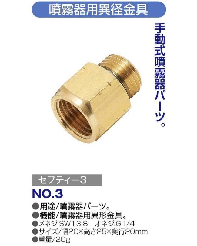 セフティー3(Safety-3) 手動式噴霧器用異径金具 メネジSW13.8 オネジPF1/4 No.3