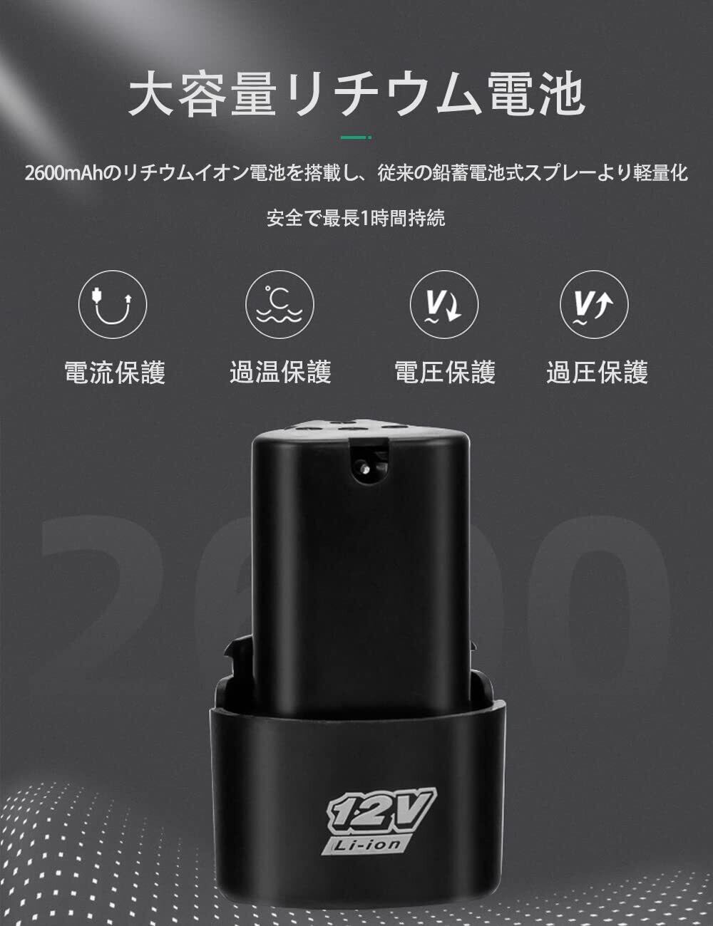 【デラックスセット】セット内容:噴霧器×1、スプレーガン×1、ショルダーストラップ×1、ノズル*6、2600mAhバッテリー*2、充電器*1。お使いの機械に1年間のサービスを提供します。ご不明な点がございましたら、24時間体制でご質問にお答えしますので、速やかにご連絡ください。ユーザーに100%満足のいくサービスを提供することです。