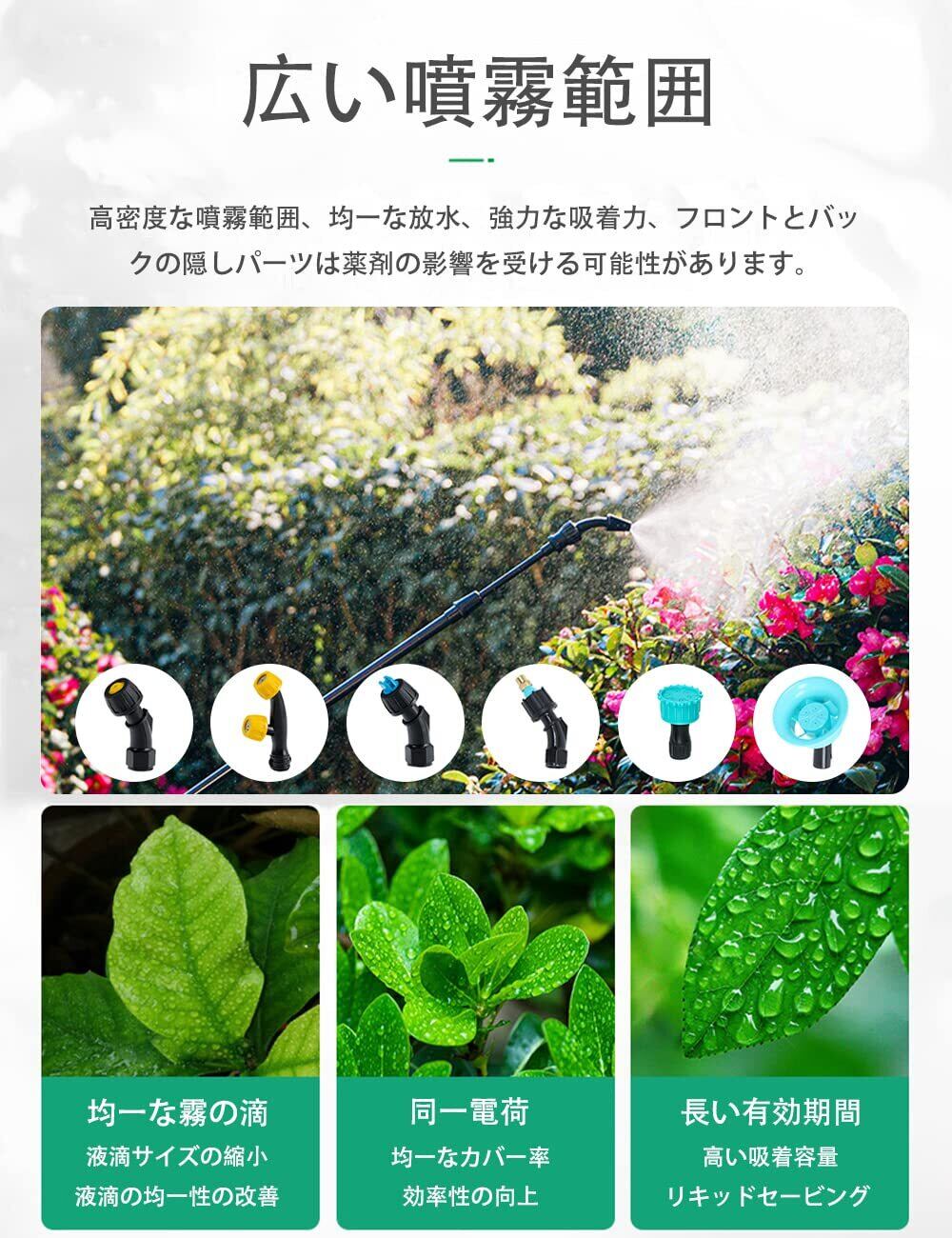 【高性能モーター&超大容量タンク】lopoti 充電式噴霧器は、モーター回転数3200(r/min)、噴射量:3100cc/分の高性能モーターを搭載し、強力な噴霧力で広い範囲を噴霧することができます。10L大容量タンク装備します!それにコードレス!移動しながら長時間の作業に最適です。