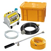 付属品:ノズル(54cm) 1本、ストレーナー 1ヶ 、ジュビリバンド 1ヶ、結束バンド 3本、薬液槽 (収納ケース) 1ヶ、吐出ホース(20m) 1本、吸入ホース(2.5m) 1本、余水ホース(2.5m) 1本