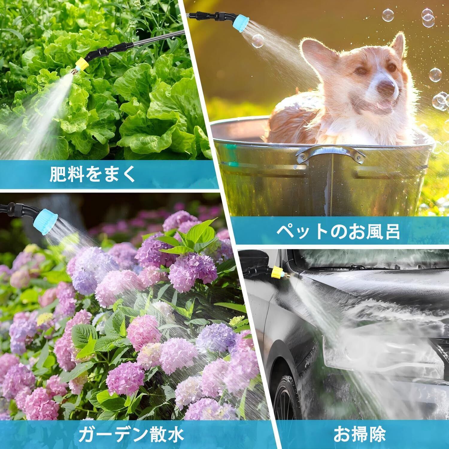 【耐久性と多彩なアクセサリー】厚手の高密度プラスチック製タンクで長期間の使用に耐えます。頑丈なステンレス製伸縮ロッドで、噴射の高さや範囲を自由に調整可能。3種類のノズルが付属しており、様々な散水パターンを作れます。
