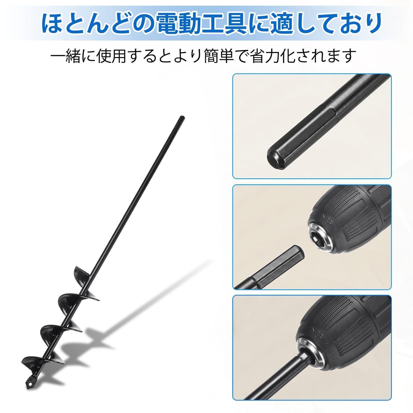 説明:アースドリルは、電動ドリルにグランドオーガーを取り付けるだけで、固い土壌に効率的に穴や土を掘削できます。手掘りに比べ断然速い、固い、硬い土壌でもできます。初心者でも老若男女問わず簡単に穴あけ作業が可能。