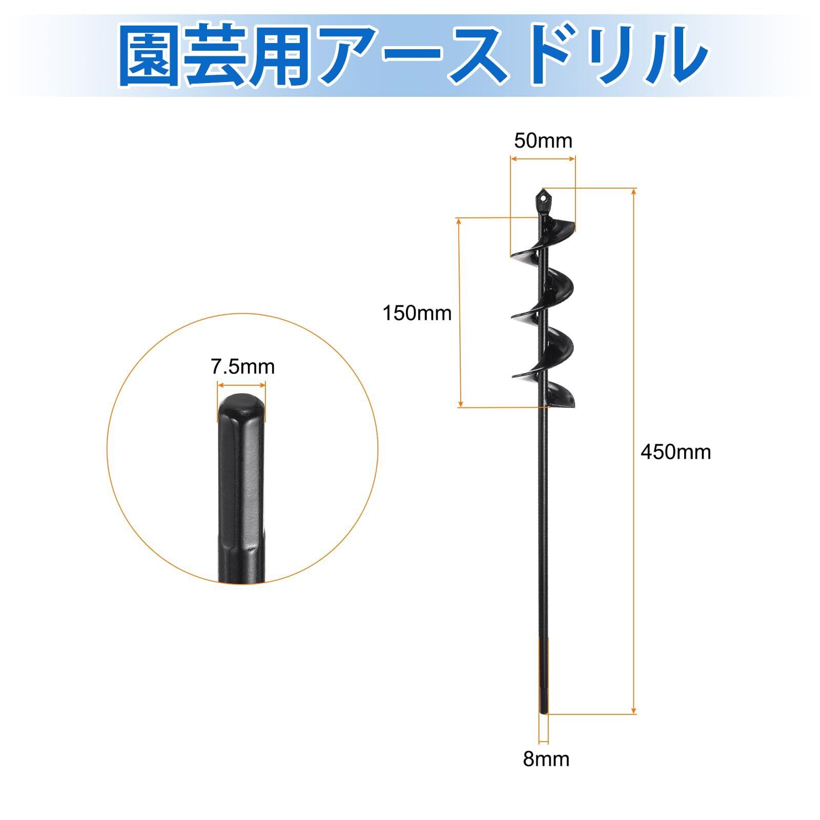 仕様:アースドリル 1本;カラー:黒;素材:炭素鋼;サイズ:全長:約450mm;幅:約150mm;直径:約50mm;ロッド径:約8mm;六角の幅:約7.5mm。アースドリルのサイズは手作業で計測しているため、多少の誤差が生じる場合があります。