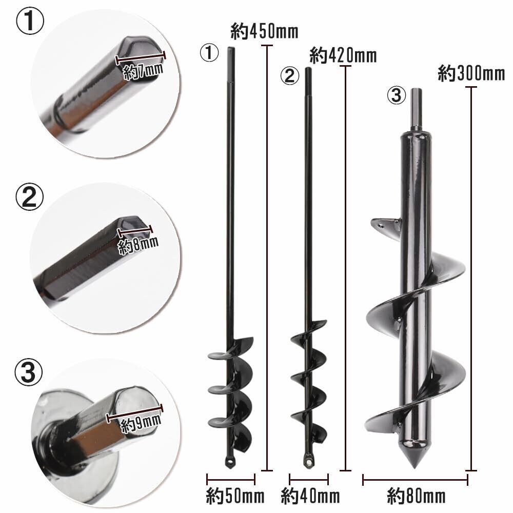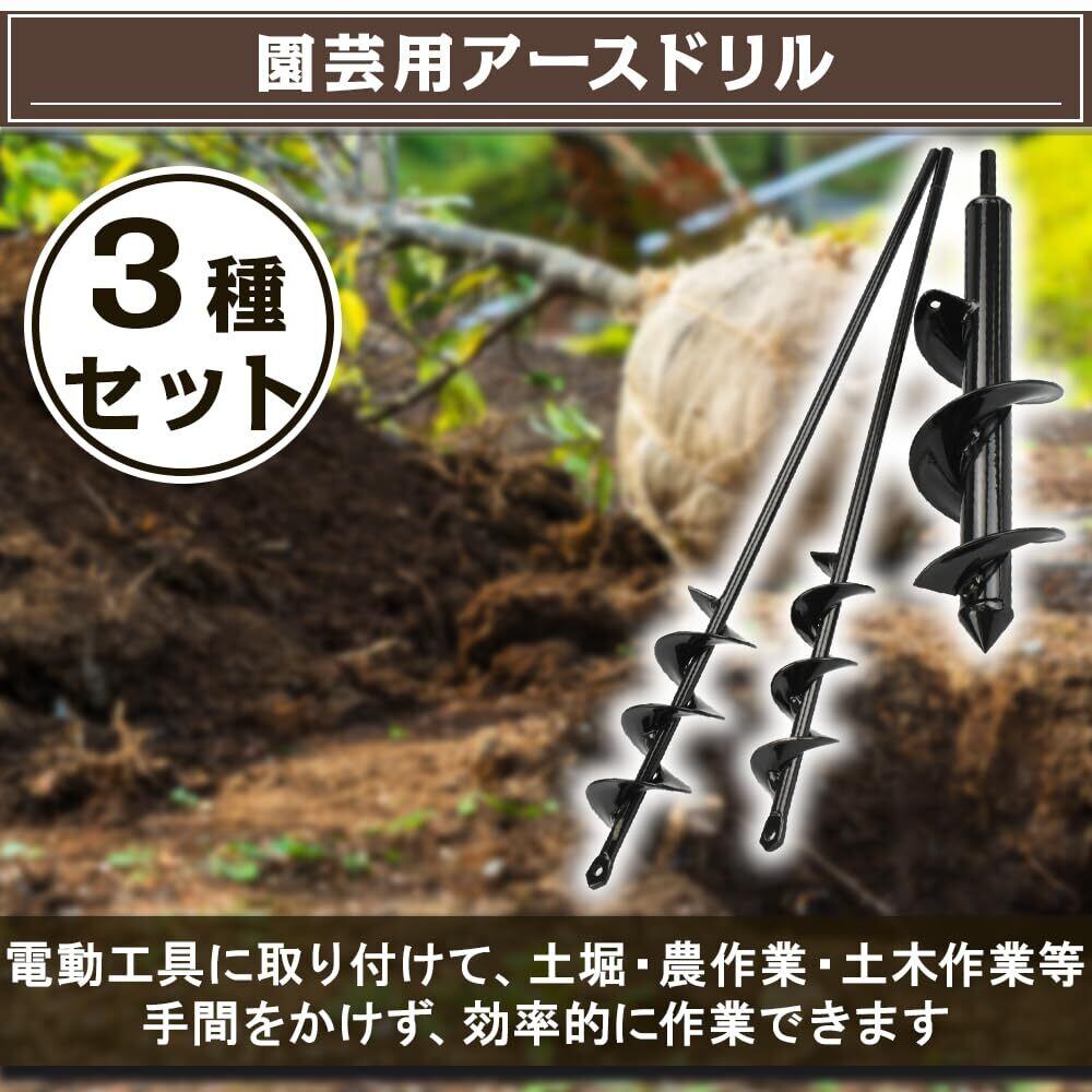 ドンシンク60 園芸用アースドリル 3サイズセット 穴あけ器 電動工具 穴掘り 苗床 支柱設置 DIY 農業