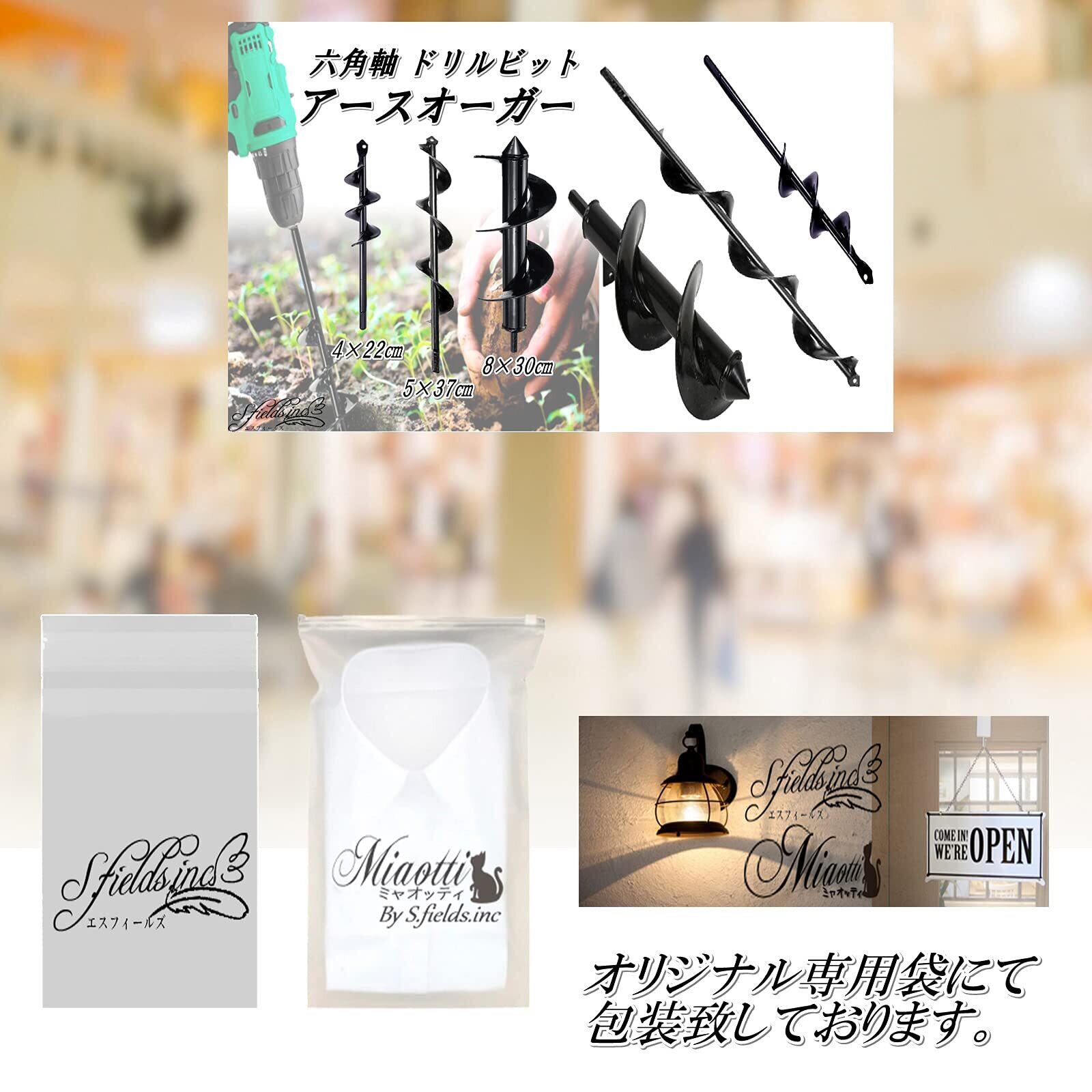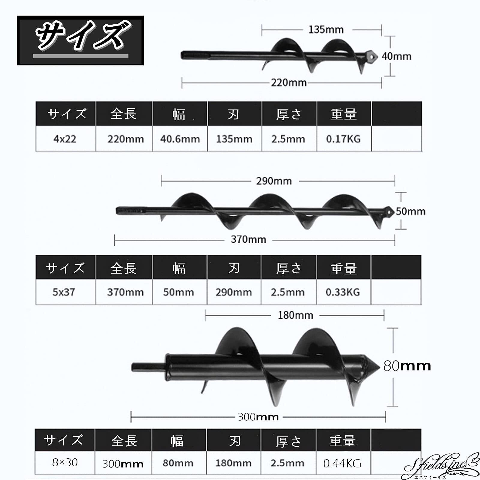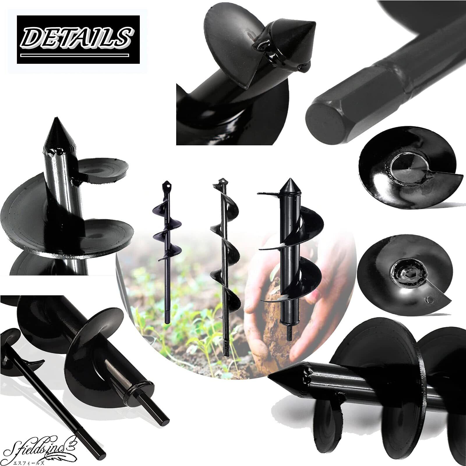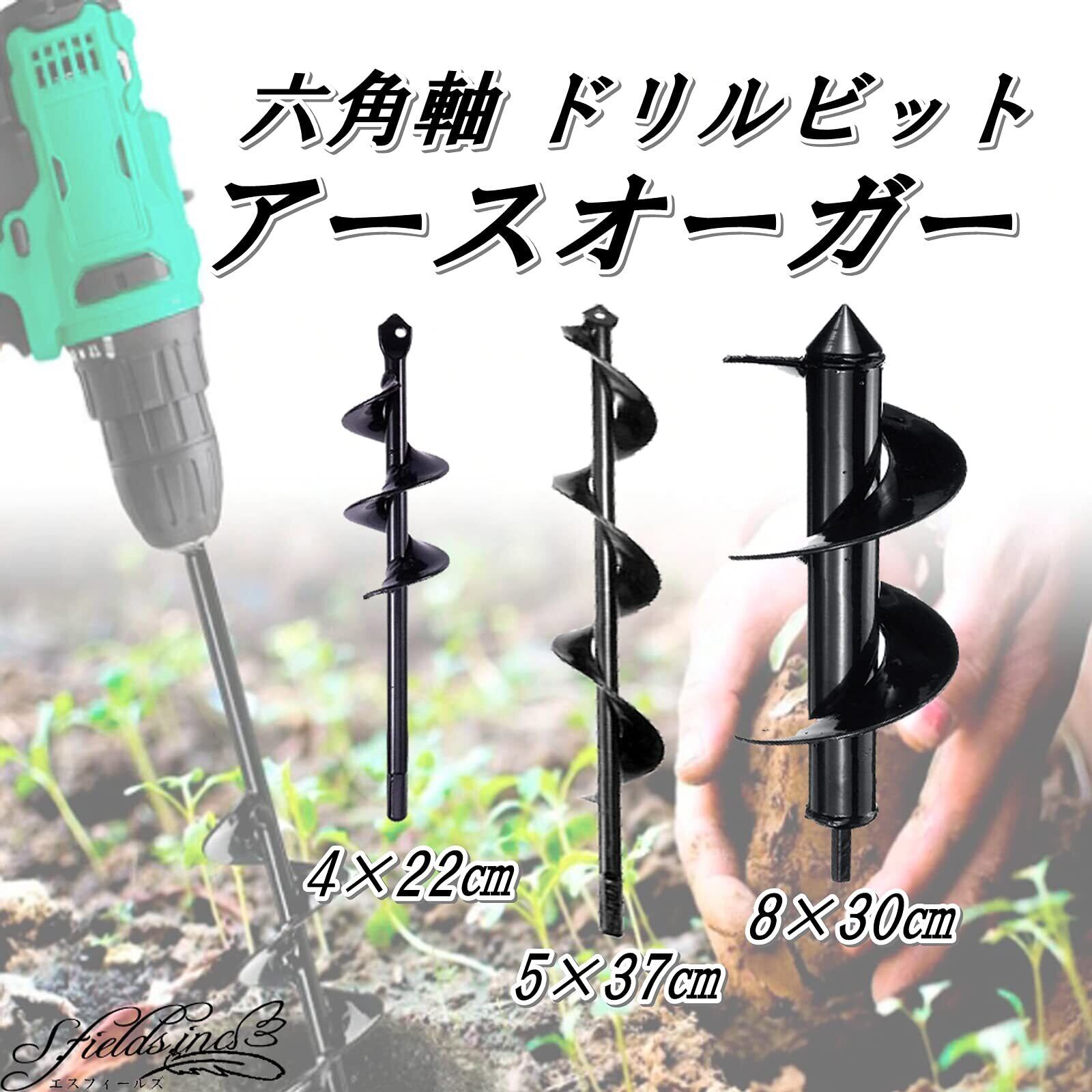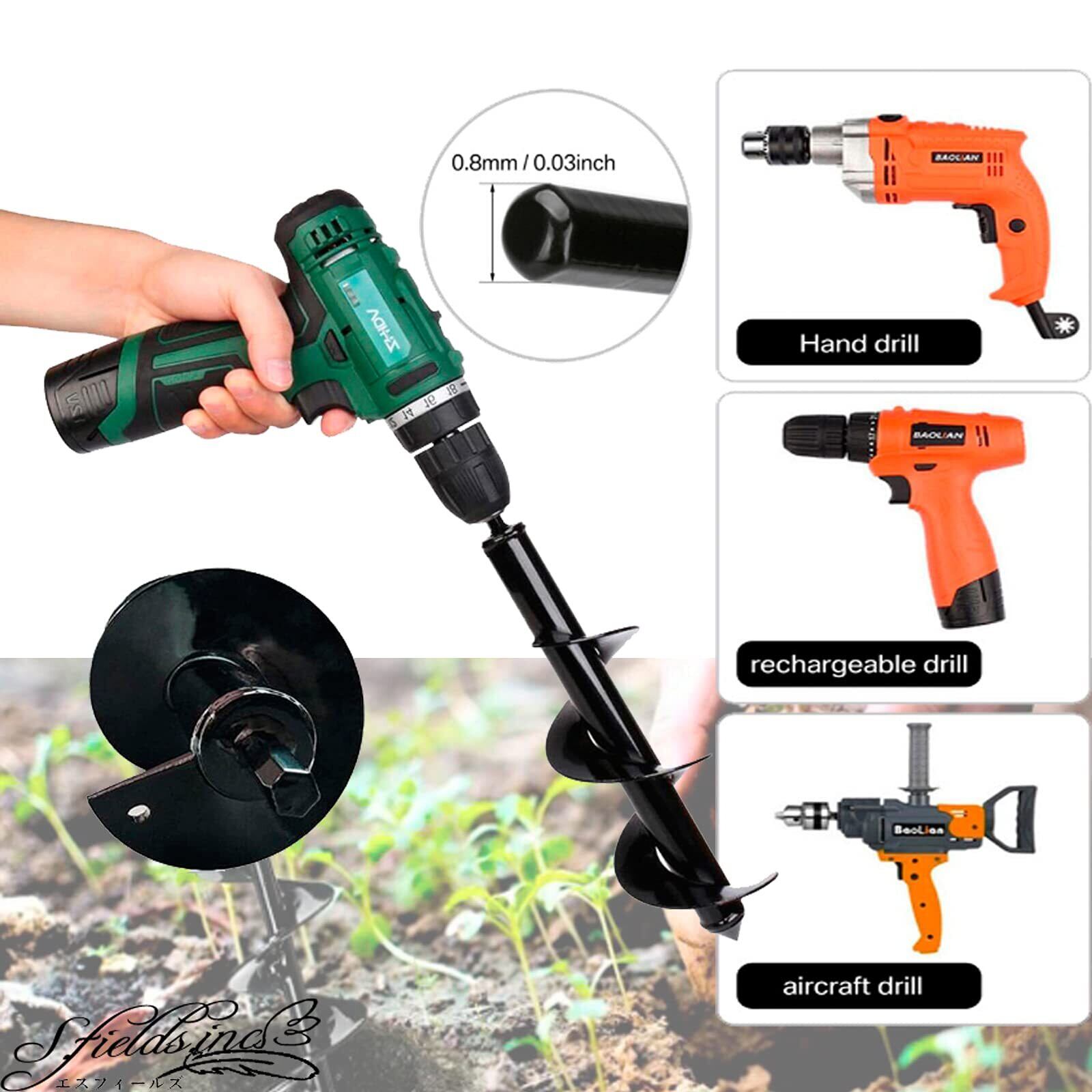 S.fields.inc アースドリル 園芸用 アースオーガー 六角 インパクトレンチ 芝生 掘削 アダプター ビット (8×30cm)