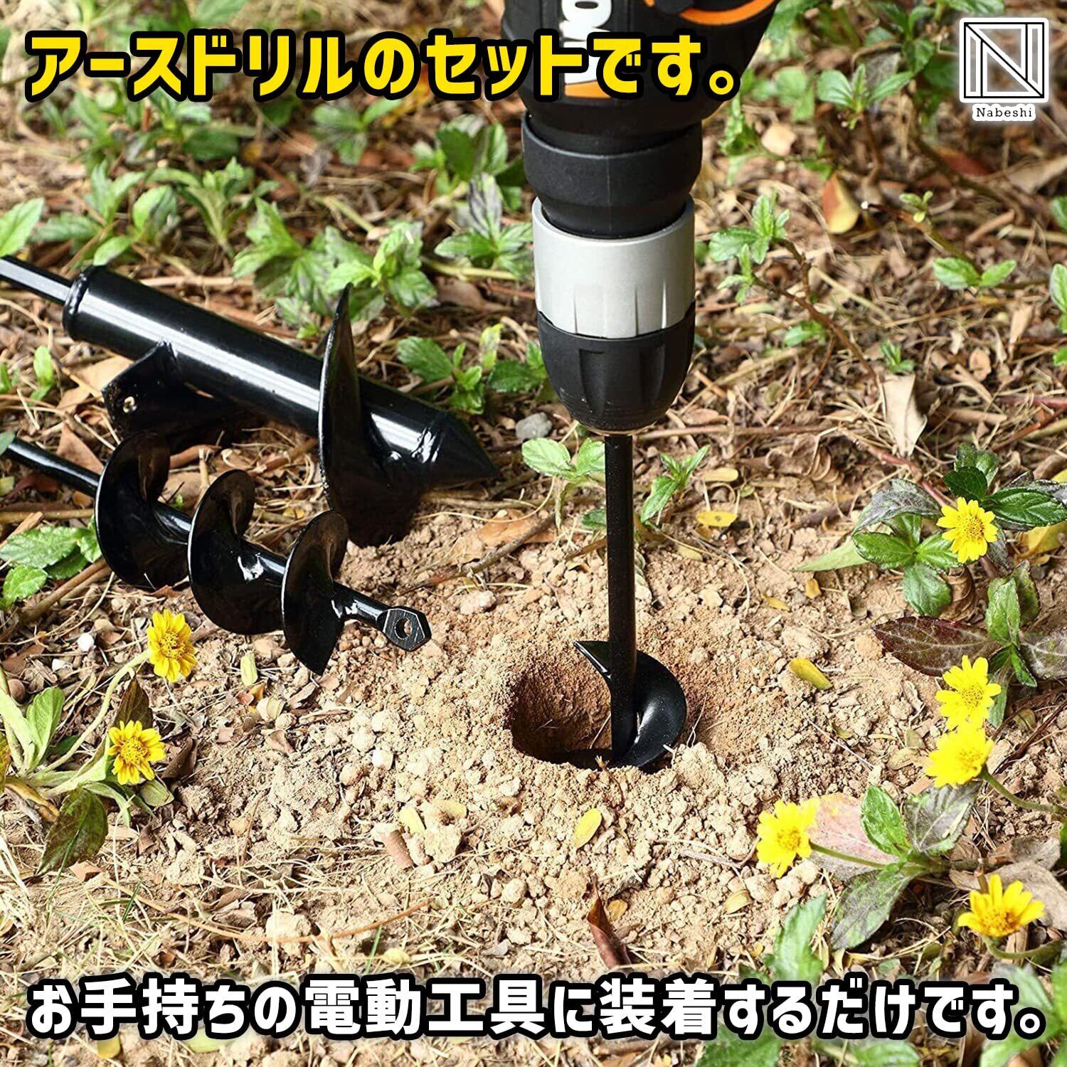 [NABESHI] アースドリル オーガードリル 六角 園芸 家庭菜園 穴掘り 穴あけ ドリルビット (黒 3種セット)
