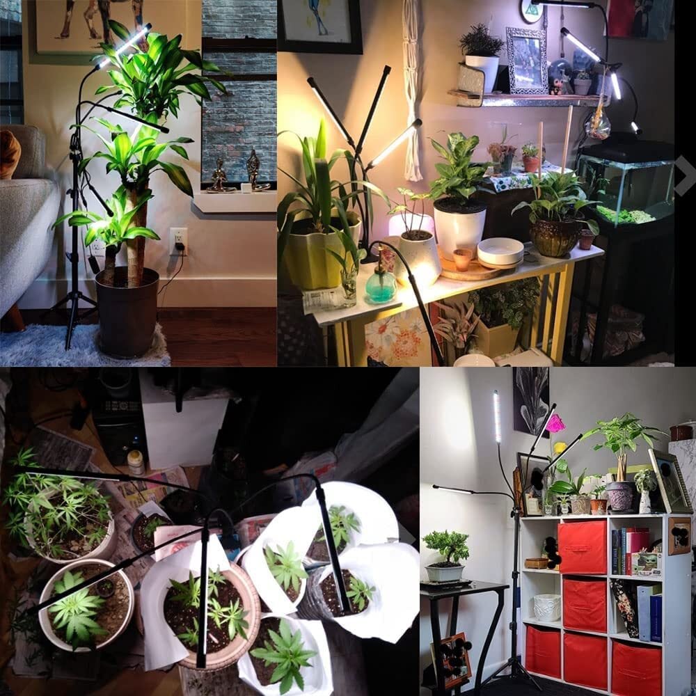 LED植物育成ライト、スタンド付き4ヘッドプラントライト、屋内プラント用の80W 80LED 5500Kフルスペクトルフロアプラントライト、9調光度、自動オン/オフタイマー、38〜120 cmの三脚調整可能 | KSショップ