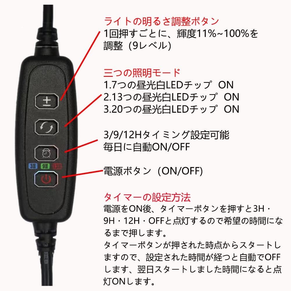 [自動オン/オフタイマーと9レベルの明るさ]ライトにはUSBコネクタがあり、オフィスや自宅(アダプタを含む)に簡単に接続できます。 LED植物育成ライトは3つのタイミングオプションを提供します-3H / 9H / 12Hタイマー。毎日手動操作なしの自動開閉、必要に応じて明るさ調整も可能です。