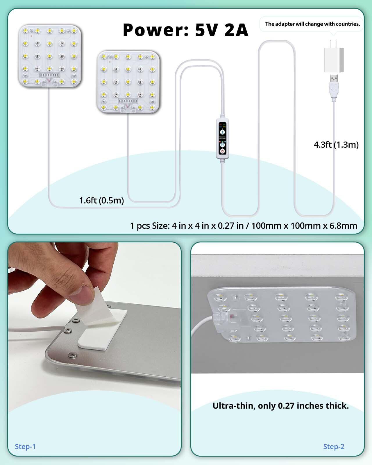 省スペース設計-省スペースでスタイリッシュな設計により、私たちのブリム 植物育成ライトはあなたの室内植物設定とシームレスに融合します。各成長ランプパネルのサイズは10(縦)x 10(幅)x 0.63(高さ)cmで、構造がコンパクトで管理しやすい。電源ケーブルの長さは1.8メートルで、室内空間に設置するのに便利です。