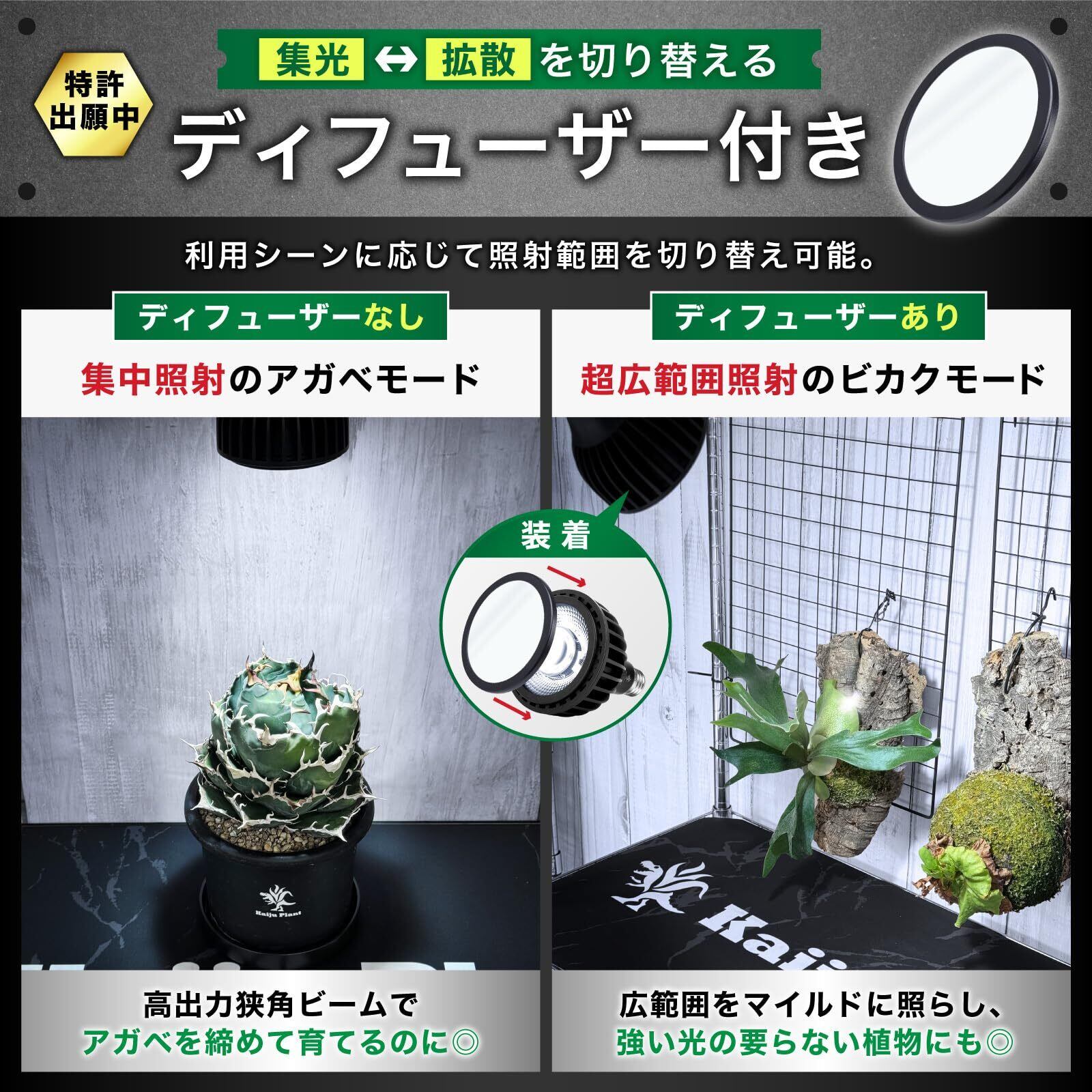 【2つのモード】中のディフューザーを取り付けて、集中照射のアガベモードから光を拡散し広範囲をマイルドに照らすビカクモードへ 集光→拡 散をきりかえることができます リフレクターが標準装備となりました(2025/05/30~)
