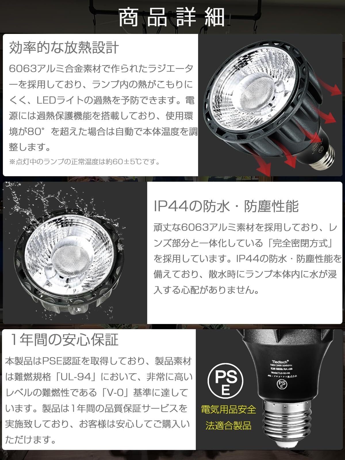 ꕥ【1年安心】本製品はPSE認証を取得しており、製品素材は難燃規格「UL-94」において、非常に高いレベルの難燃性である「V-0」基準に達しています。製品は1年間の品質サービスを実施致しており、お客様は安心してご購入いただけます。製品出荷する前にtledtechはしっかり商品毎に100%品質検査をし、もし商品の不具合などがございましたら返金・をさせて頂きますので、何かが問題が有った場合、取扱説明書に記載されたお問い合わせメールまでお気軽にお問い合わせください。から万全なサービスを対応させて頂きます。