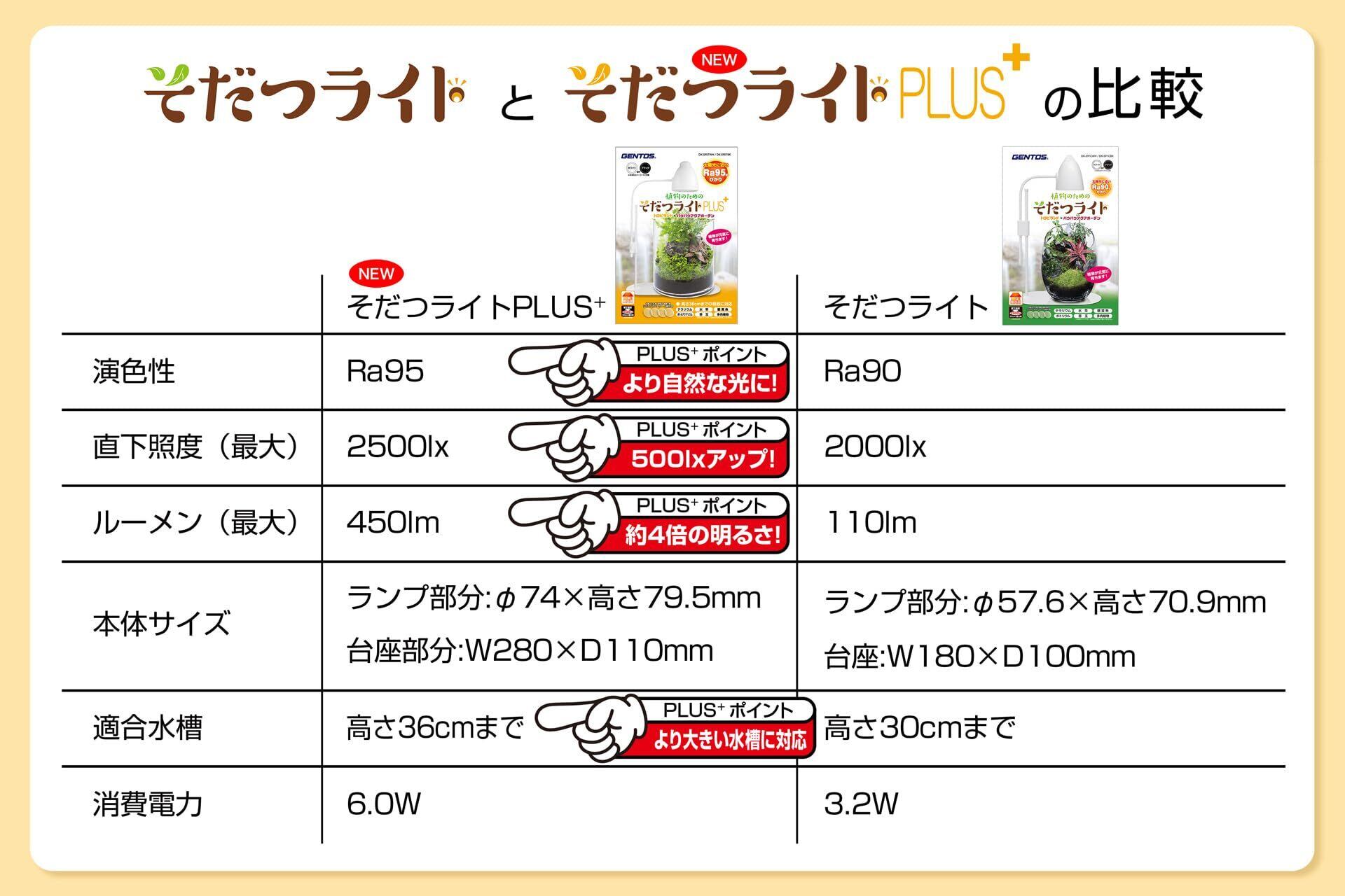 パウパウアクアガーデンとトロピランドがジェントスとコラボした「そだつライト」に新しいラインナップが加わりました! 「そだつライト PLUS+」演色性、照度、適合サイズ、照明カラーバリエーション、全てが「PLUS+」になって新発売‼