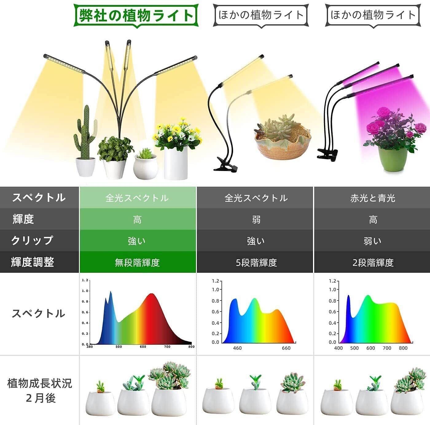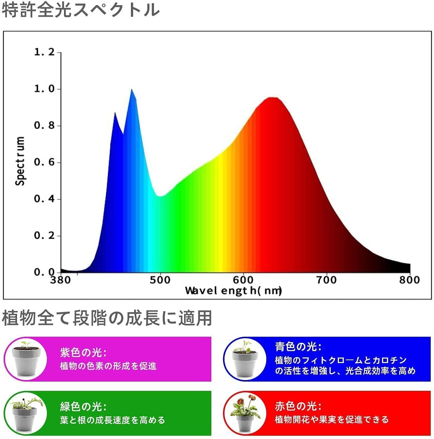 【フルスペクトル】高輝度 無段階調光,照射角度120度(光透過率の高いPCケース使用)超演色評価数のフルスペクトルLEDを追加し、見やすくしました。ブルーライトハザードはほとんどなく、葉や花の色が美しく見えます