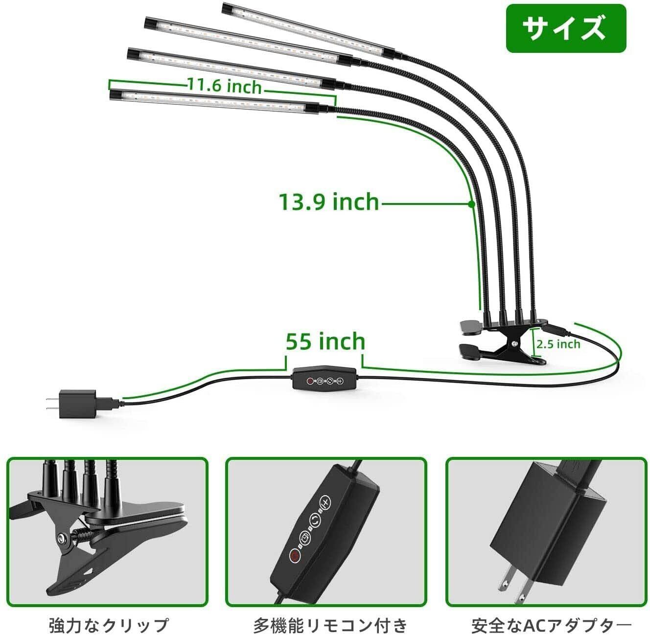 【タイマー機能】3時間、6時間または12時間の3つの時間設定モードは、異なる植物のニーズに応じてあります。3時間に設定した場合で、植物育成LEDライトが自動的に3時間後に消えます。24時間後に同じ時間に自分で点灯します。 【24時間サイクル】例えば朝8時にオンしたら11時に自動消灯して、翌日の朝8時に自動的にオンになって、11時に自動消灯します。 ご注意:電力をずっと供給する必要があります。そうしないと、翌日にタイミング機能を再設定する必要があります