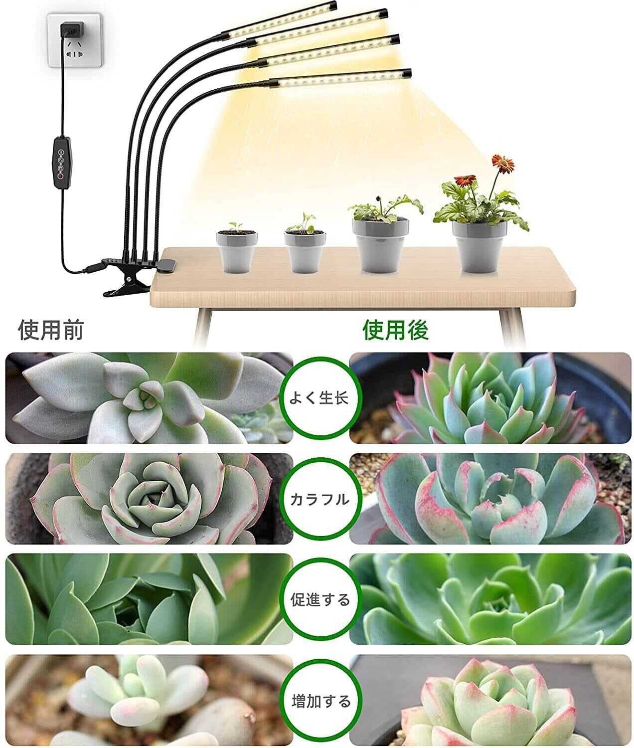 【360°調整可能な4ヘッド設計】この植物ランプは調整してどこにでも配置することが容易である360度柔軟な首とクリップを備えています、ご利用目的や用途に合わせて最適な方法でご使用いただけます。グースネックは丈夫なステンレス製で、柔軟性があり、固定位置を維持します