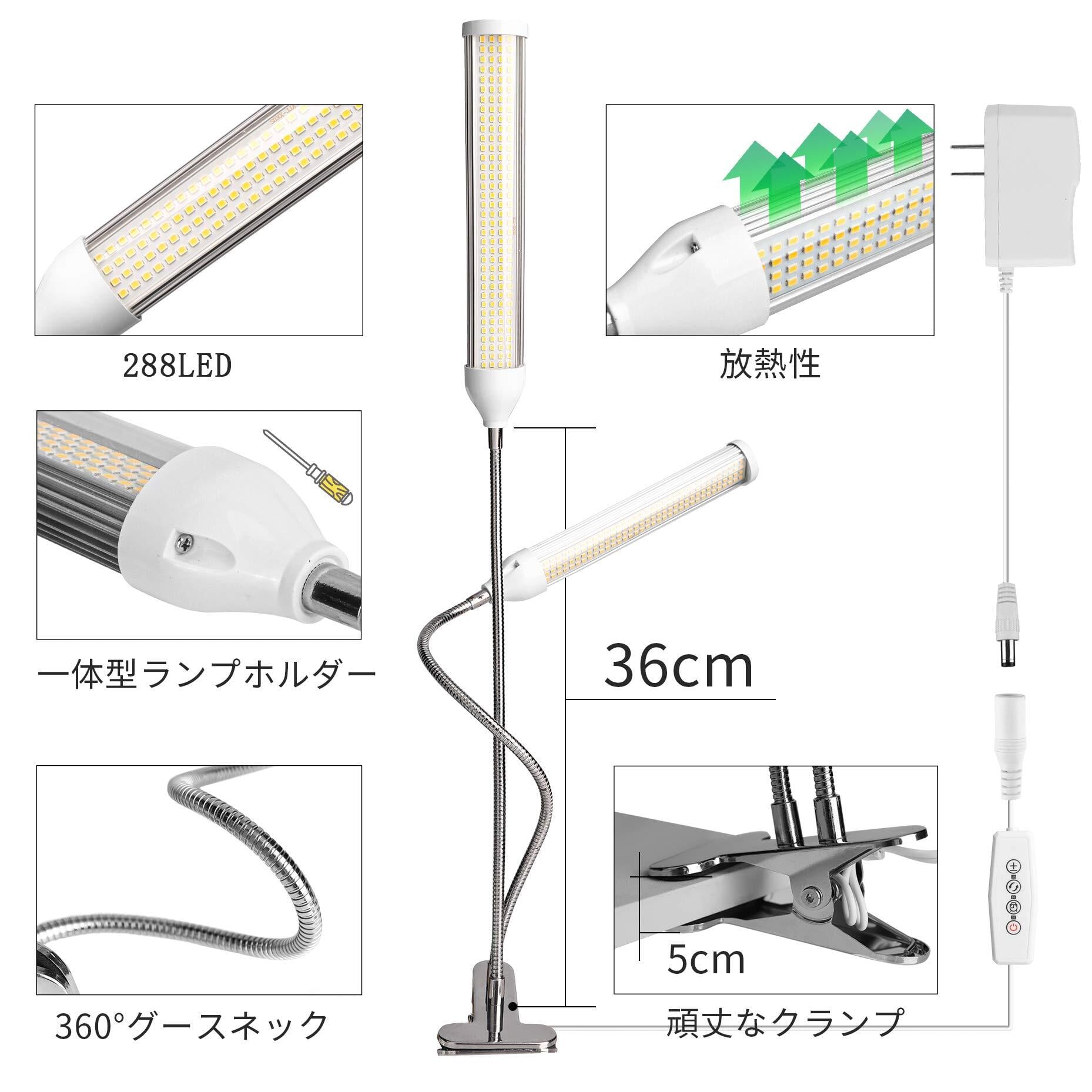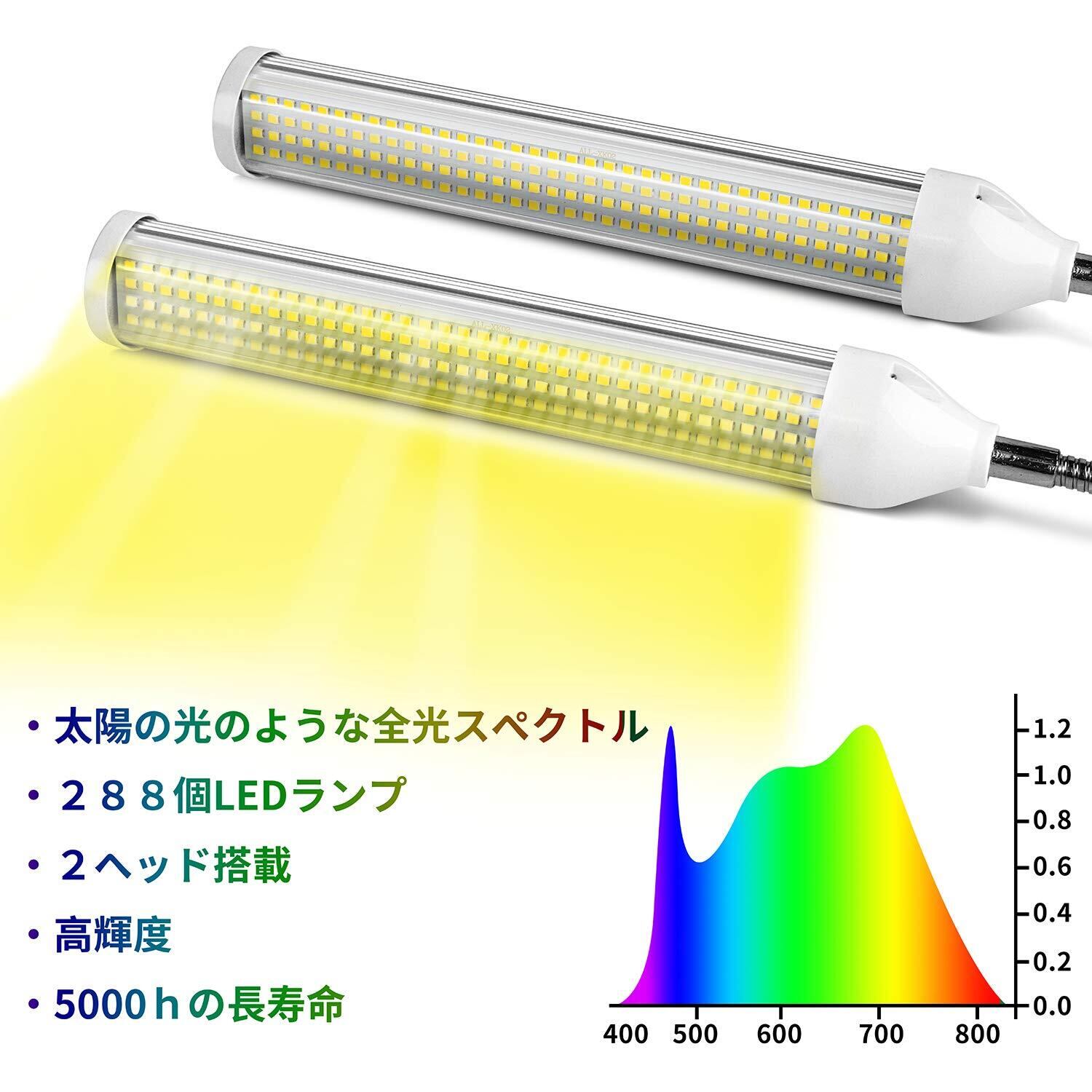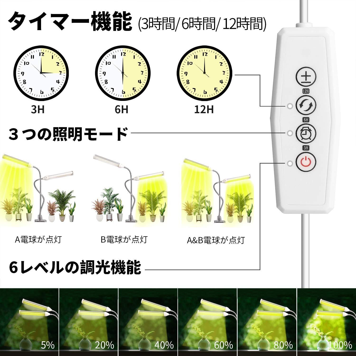 3種類点灯モード・360度調整可能:コントロールで、ライトは1つのライトが点灯し、もう一つのライトが点灯し、二つのライトが点灯を設定できます。さらに6段階調光で、様々な植物の光合成を満足できます。360度柔軟な首とクリップを備えて、グースネックは丈夫なステンレス製で、柔軟性があり、配置が容易であり、より広い範囲をカバーできる育成ライトです。