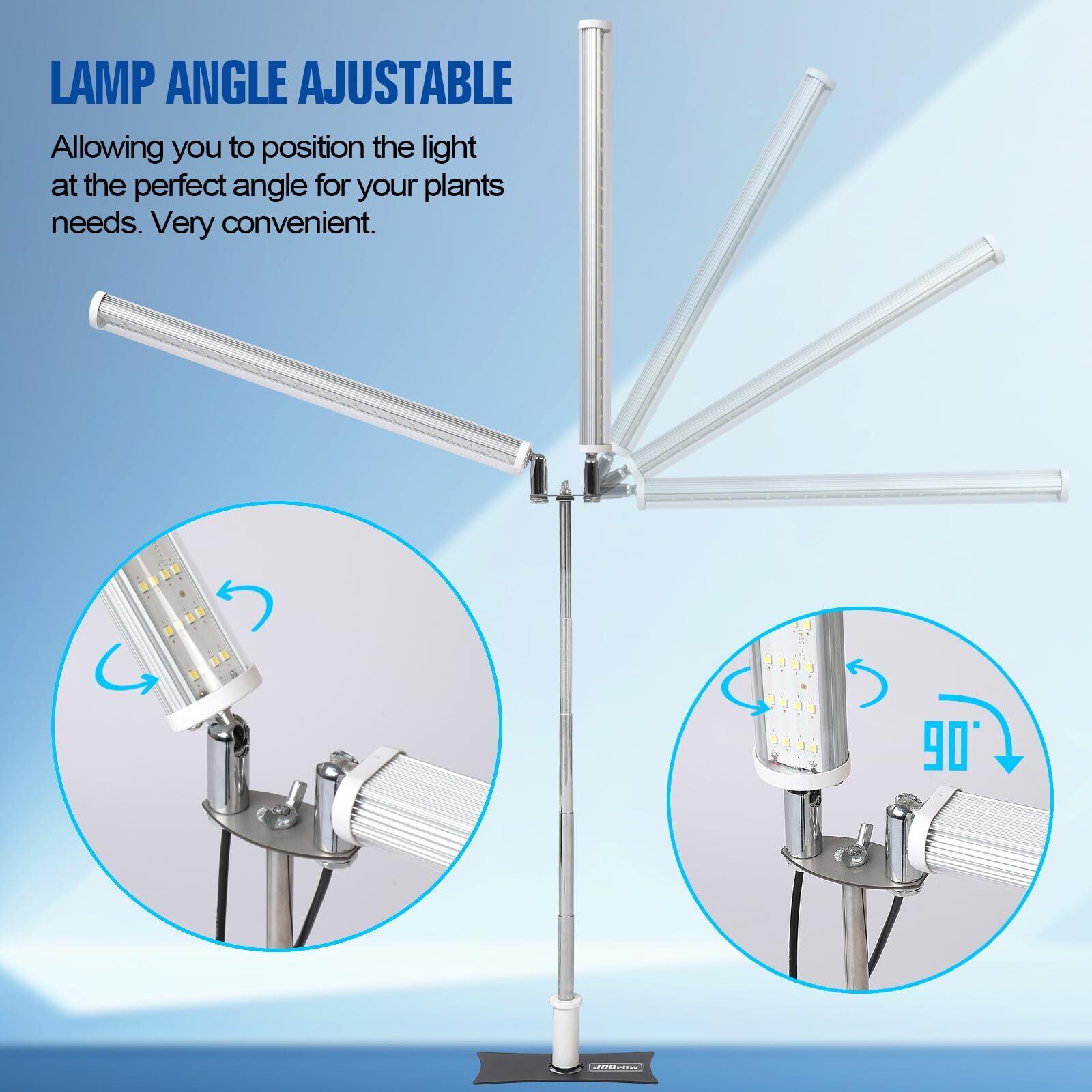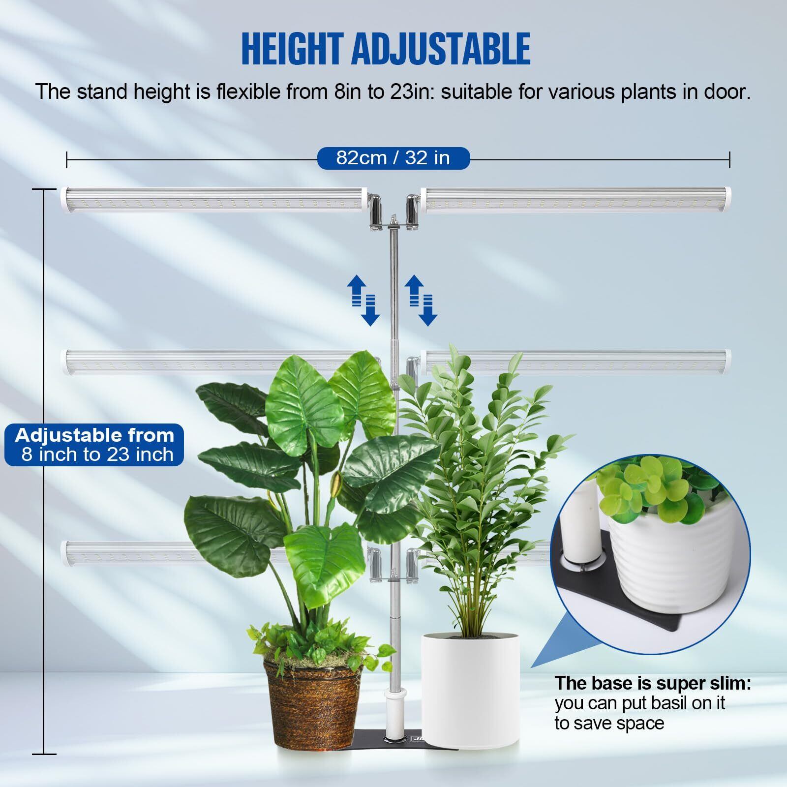 調整可能なスタンドの高さ:栽培ライトには自立式のスタンドが付属しており、高さは8インチから23インチまで調整可能で、さまざまなサイズの植物に簡単に対応できます。