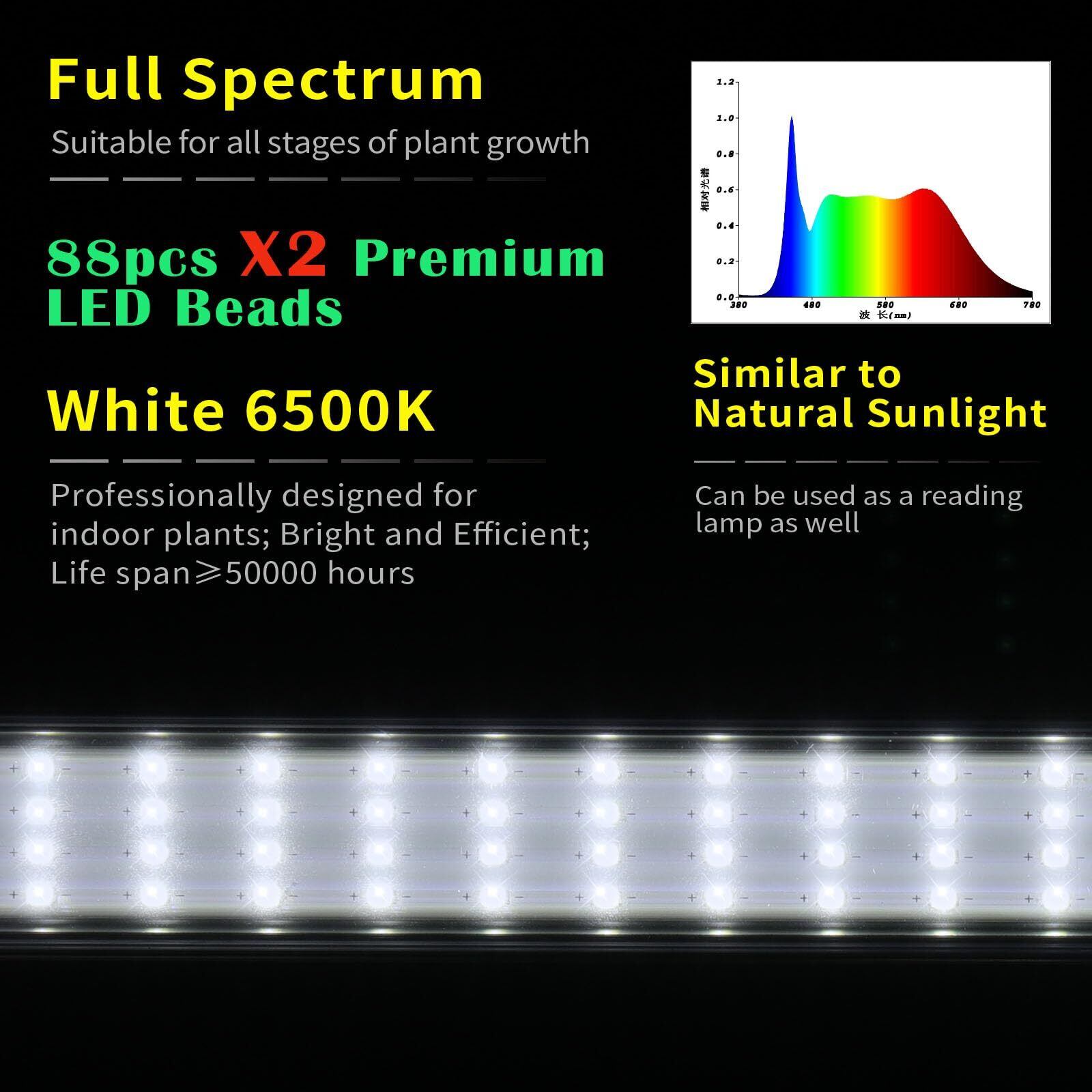 ホワイト6500Kフルスペクトラム:この植物ライトは室内植物のために特別に設計されています。6500Kの明るい光を放つ88個x2のプレミアムLEDビーズが丁寧に埋め込まれており、自然光に似ています。植物の成長のすべての段階に適しています。