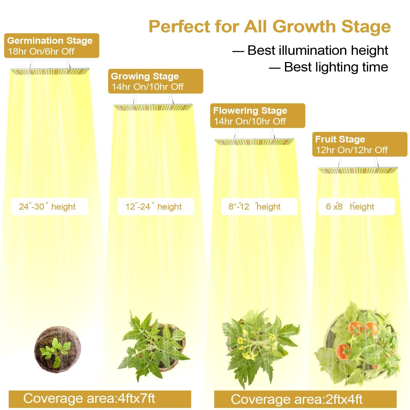 【柔軟な照明】当社のLED育成ライトは、異なる明るさのステップレス調光オプションを提供し、高さを調整することなく、植物の異なる光強度ニーズに対応します。タイマーは付属していませんので、自分のタイマーを使用して任意の照明時間を設定できます