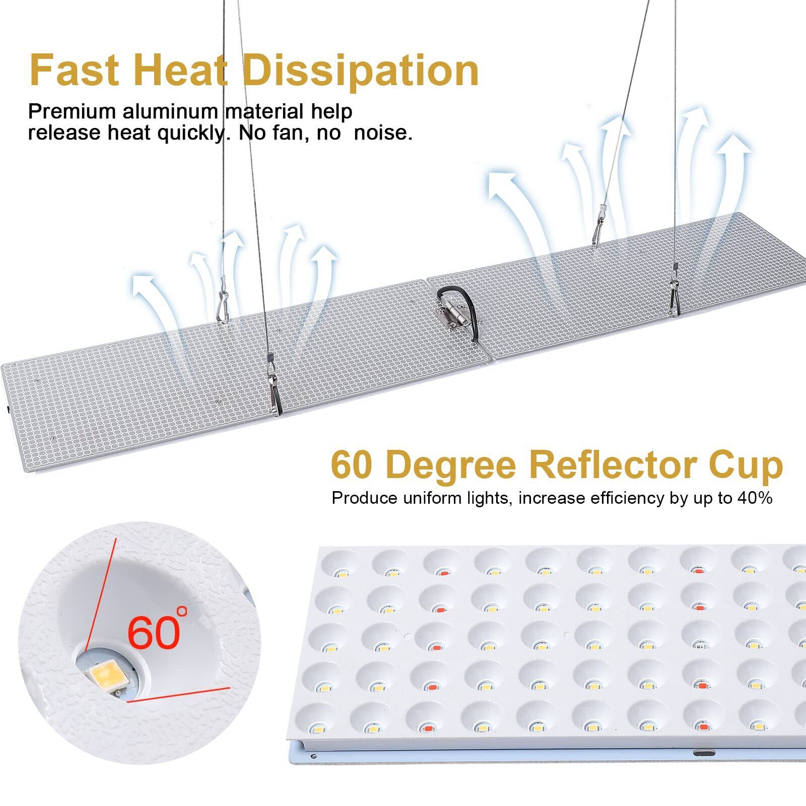 【革新的なデザイン】当社のLED育成ライトは、均一な光を生み出す60度の反射カップを特徴としており、効率を最大40%増加させます。アルミニウム材料は、ファンがなくても高速な放熱を可能にし、静かで耐久性があります。各部品は分離されており、や修理が簡単です。コンパクトで軽量で丈夫です