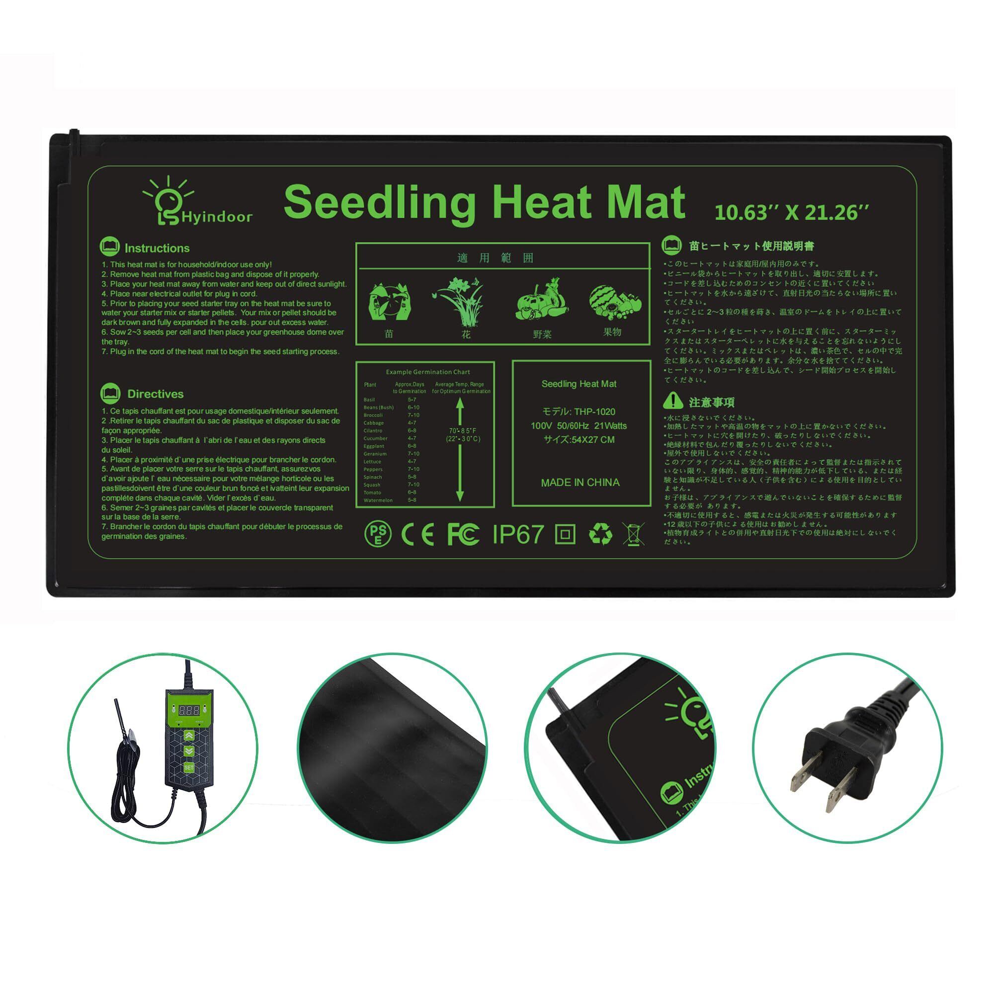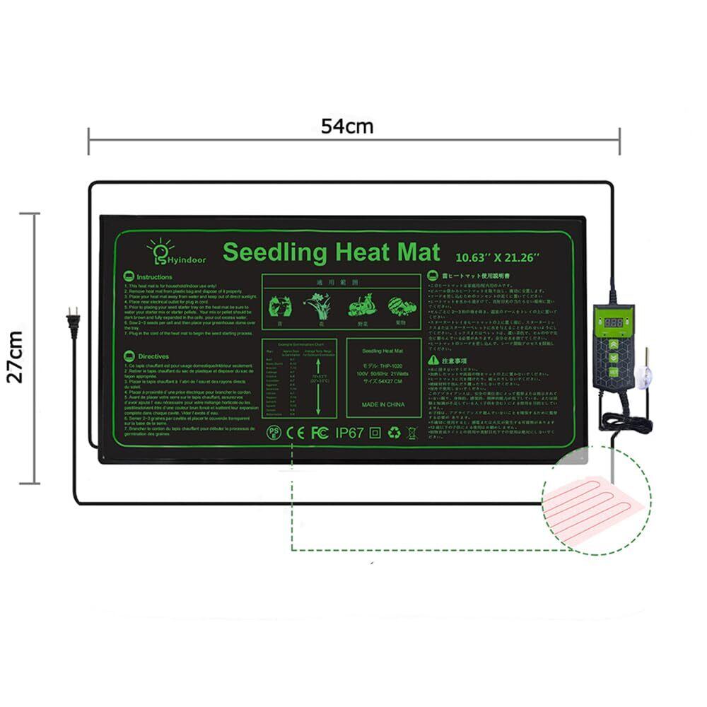 Hyindoor ヒートマット植物 デジタル表示 サーモスタット付き 温度調節 園芸発芽マット 育苗マット 育苗器 (27*54)