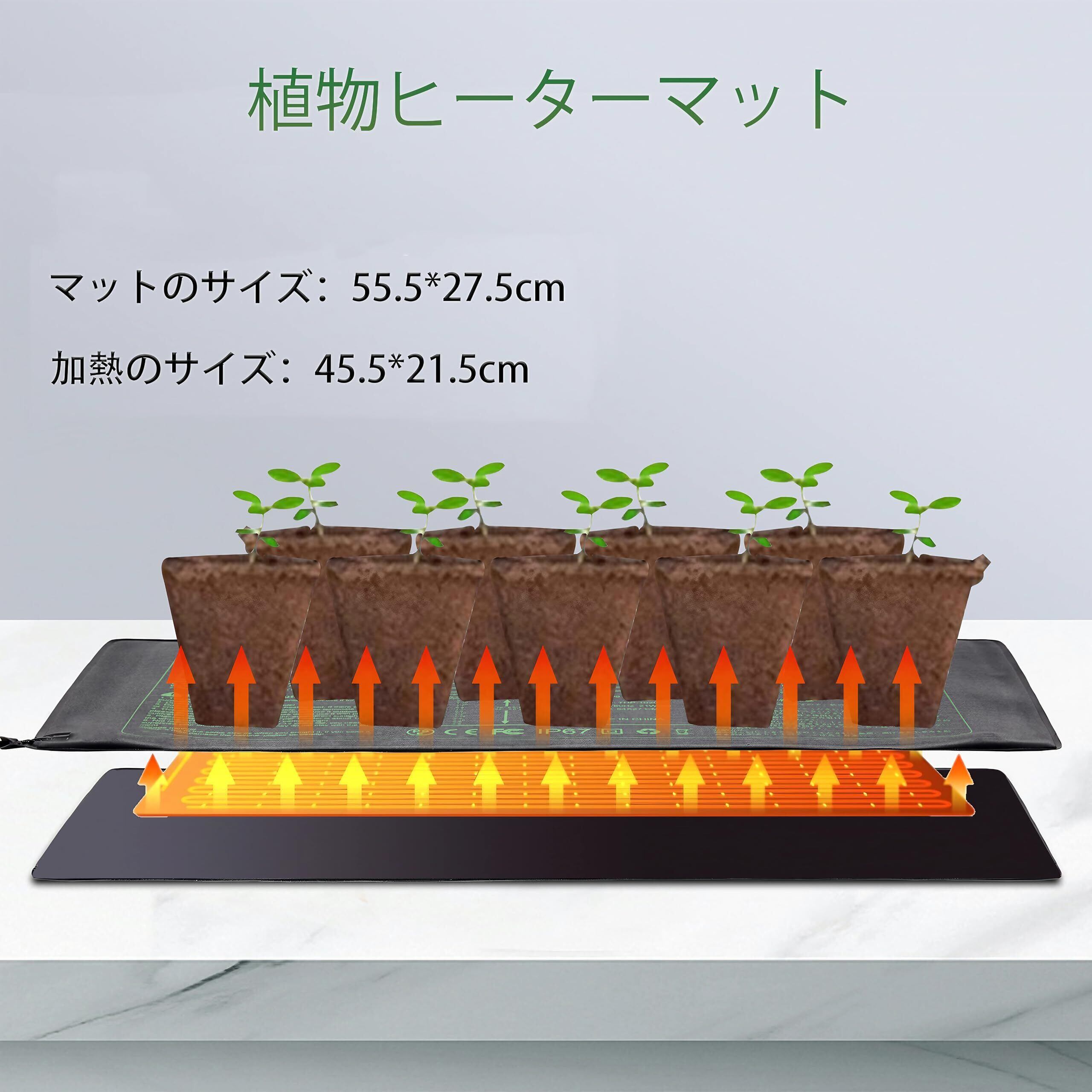 2.園芸ヒートマットのサイズは55.5*27.5cm、温度範囲寸法は45.5*21.5cmで、植物トレイと一緒に使用するのに適しています。