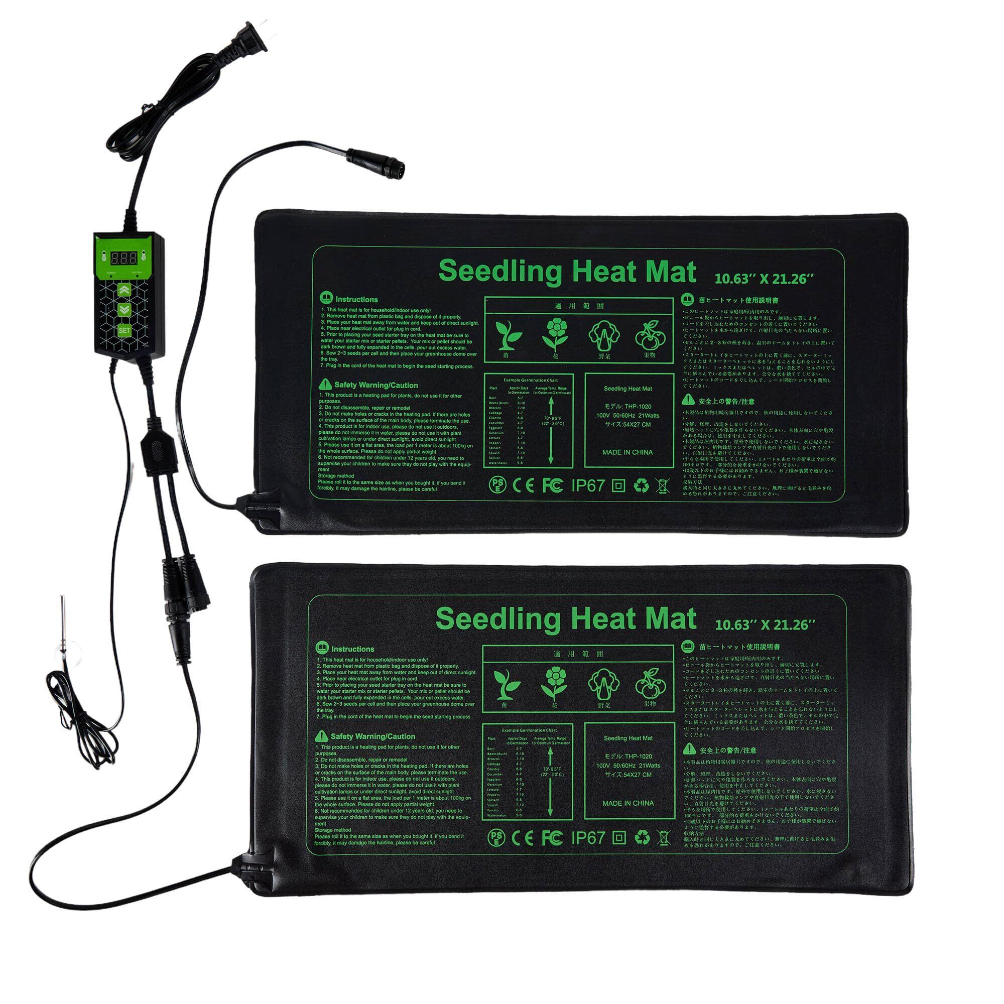 Bunmery 育苗マット 2枚セット コントローラー付き 温度調整可能 植物ヒーターマット 取り外し可能 育苗器 植物育成用パッド