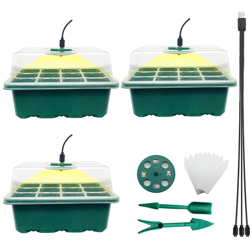 育苗ポット植物育成ライト付き 3個セット 育苗トレイ 育苗箱 12穴 種子トレイ 発芽•育苗セット 種まきハウス 苗箱 種まき器 育苗ボックス 透明カバー 便利性 耐久性 通気性 野菜栽培 多肉植物 家庭菜園 園芸/植栽/庭園 プラグトレイ | KSショップ
