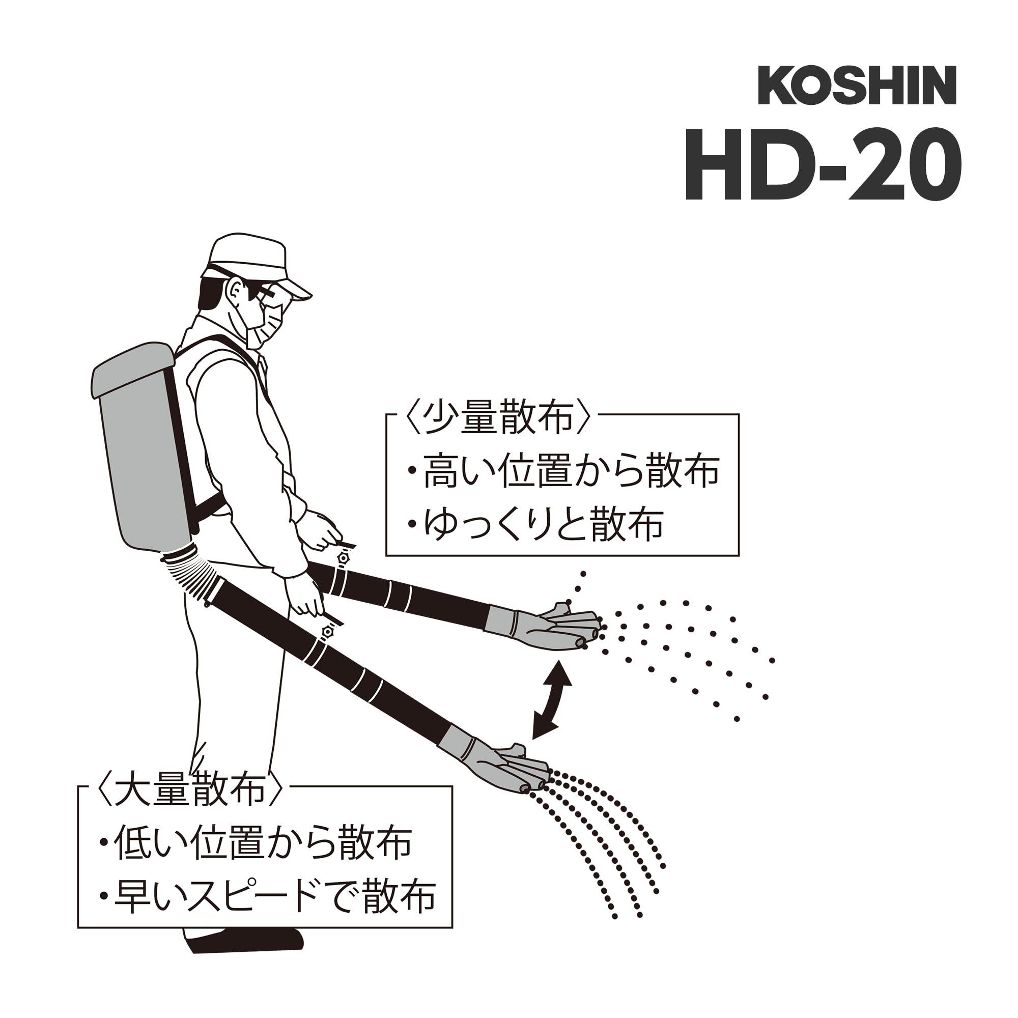 工進(KOSHIN) 肥料 散布機 容量 20L HD-20 大型 背あて パット 胸ベルト 手撒 感覚