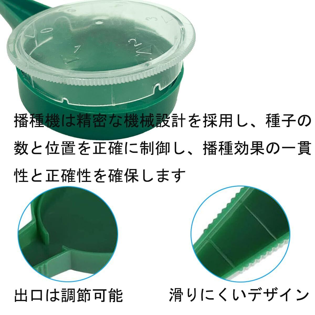 播種ディスペンサー:5つの異なるダイヤル設定設計により、5つの異なるサイズのアウトレットを介した異なるサイズのシードの流れを制御できます。