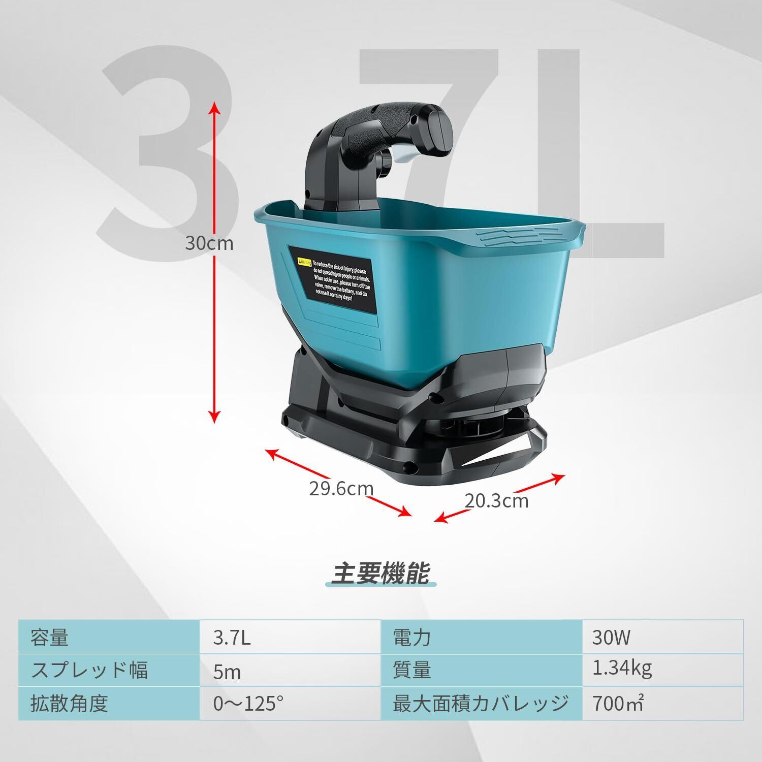 Orginer 散粒機 電動散粒機 充電式播種機 肥料散布機 種子散布機 マキタ18vバッテリー対応 容量3.7L 散布量5段階設定 均一散布 除草剤 融雪剤 種まき 飼料 目土 凍結防止剤拡散 【本体のみ】 | KSショップ