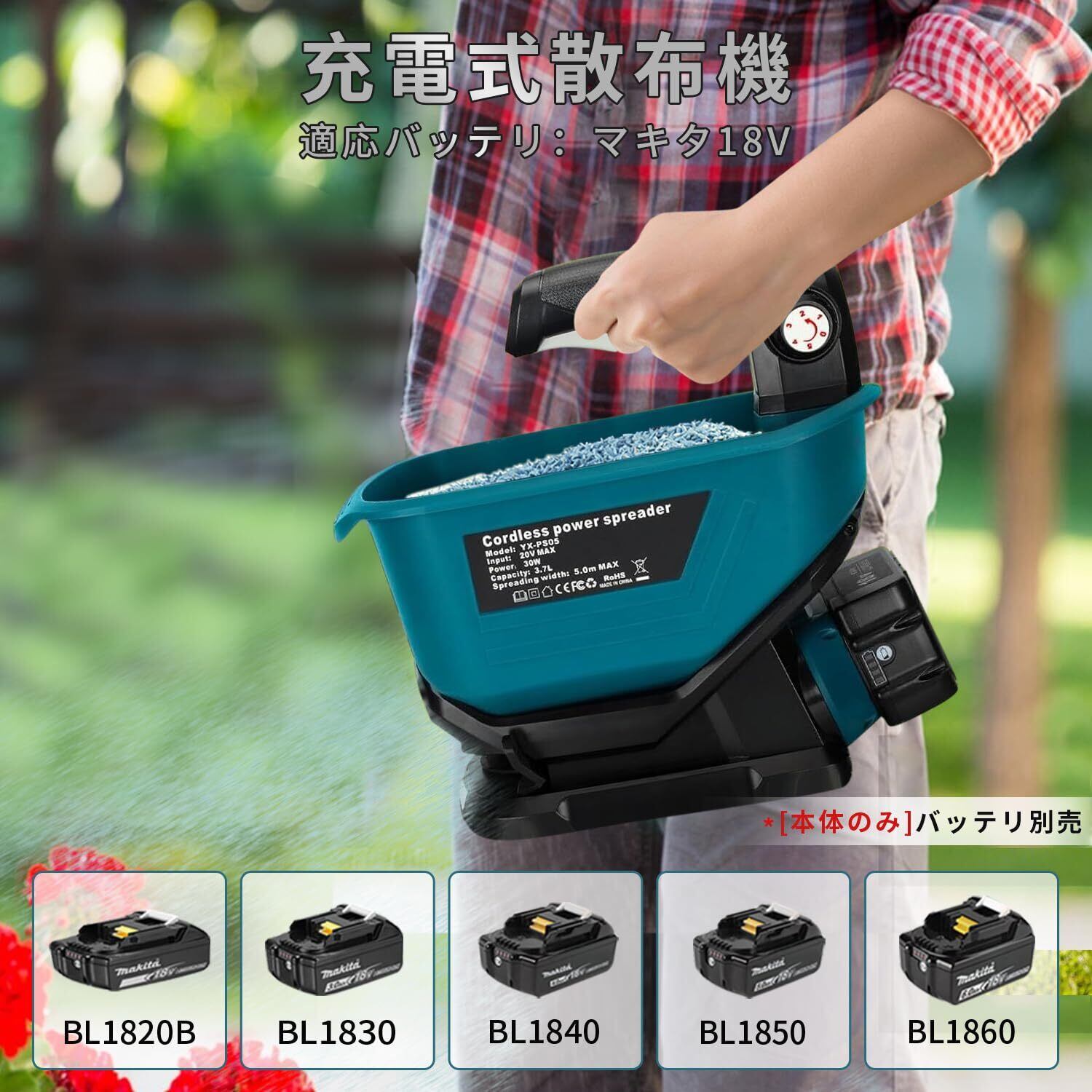 【互換品マキタ18vパッテリー】この電動散粒機は、従来の手動散粒機に比べて、マキタ18Vリチウムバッテリーに対応しており、より高い作業効率を実現します。これにより、スムーズで手間のかからない操作が可能になり、時間と労力を節約できます。