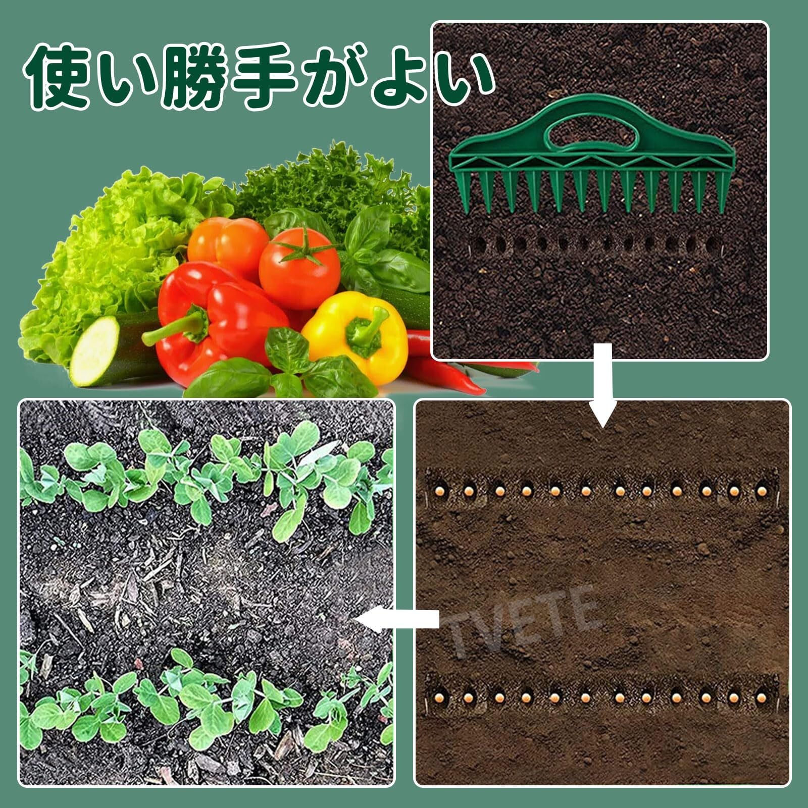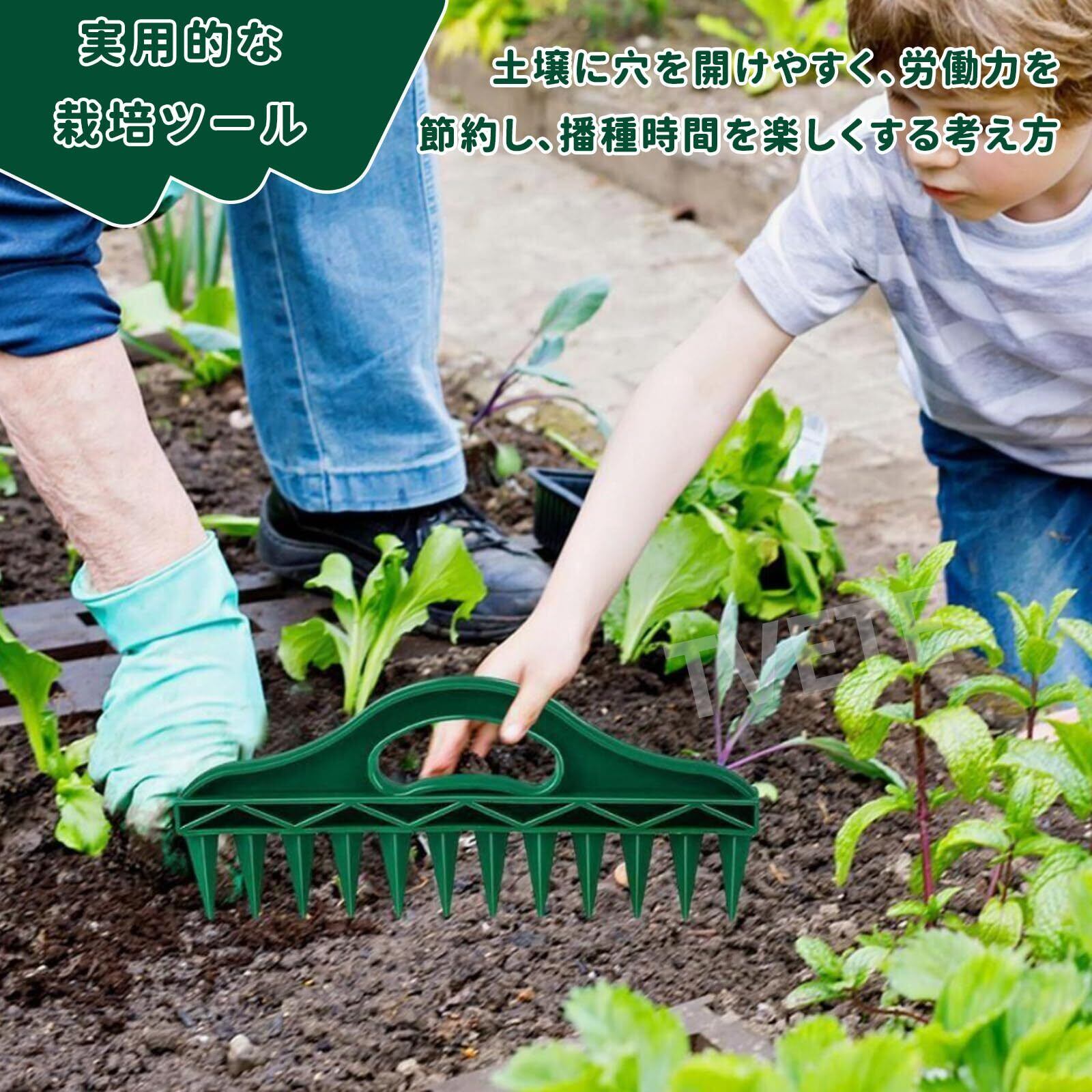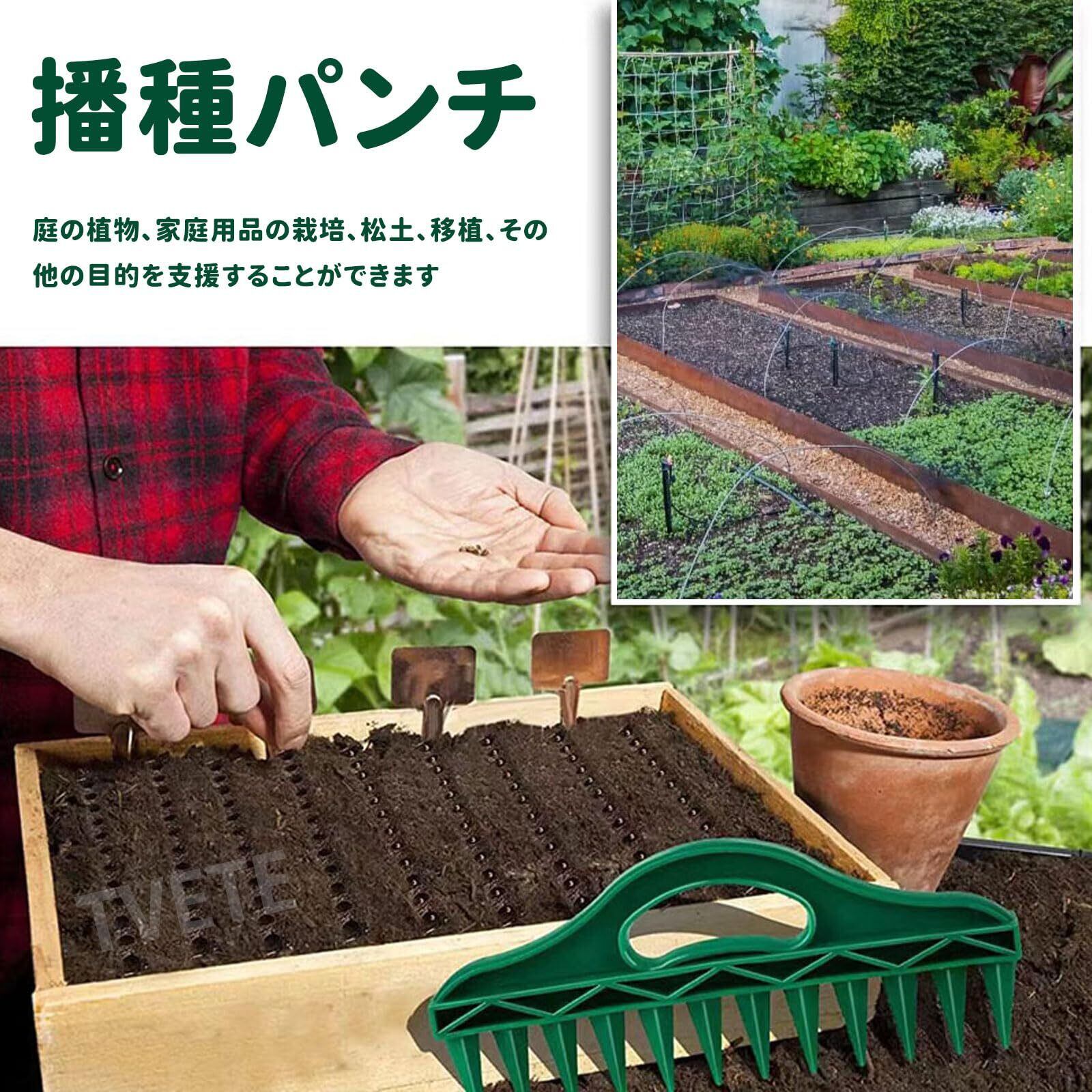 【多機能】:あらゆる種類の種子の直播きに適しているだけでなく、低木や草花など幅広い植物の枝の挿し木にも最適です。 さらに、ユニークなデザインのグリーンレーキは、土の表面を軽くほぐしたり、薄い土を覆ったりするのにも使用でき、多機能なオールインワンでさまざまなガーデニングのニーズに応えます。