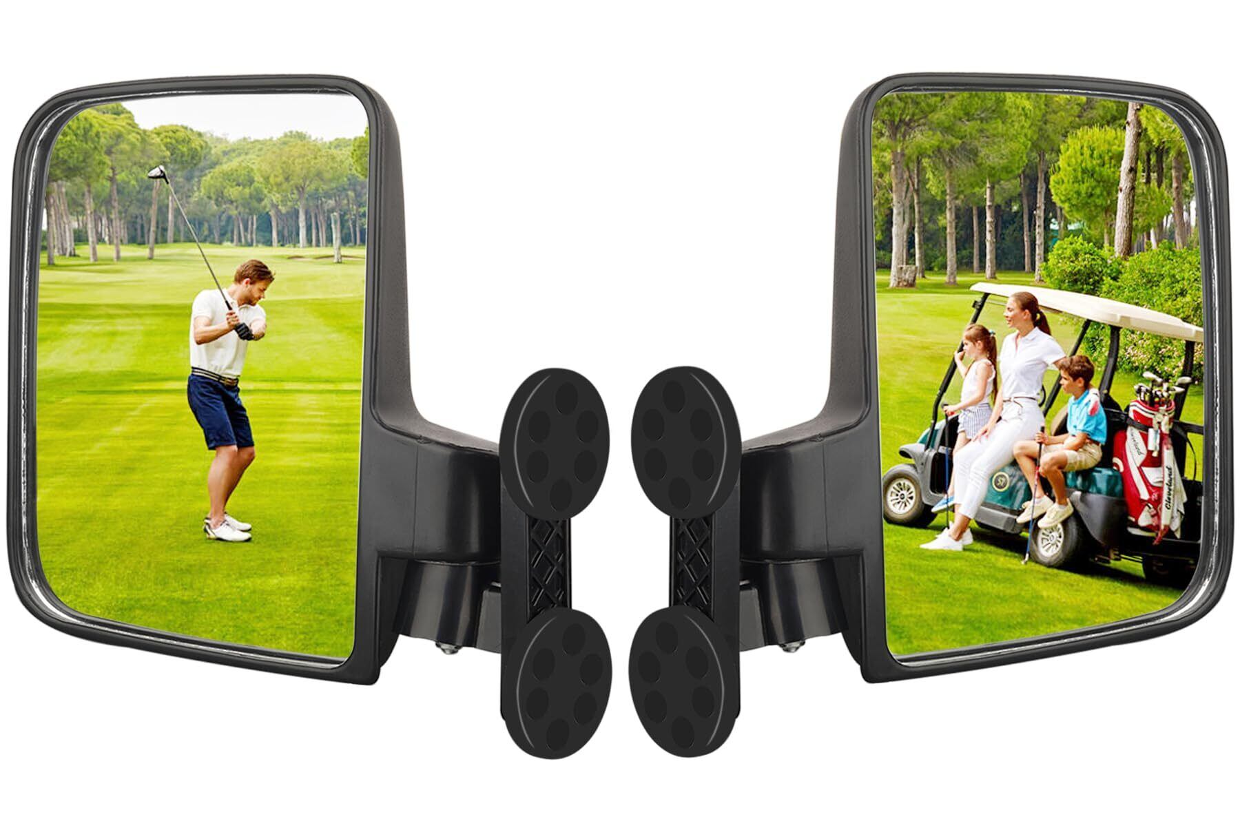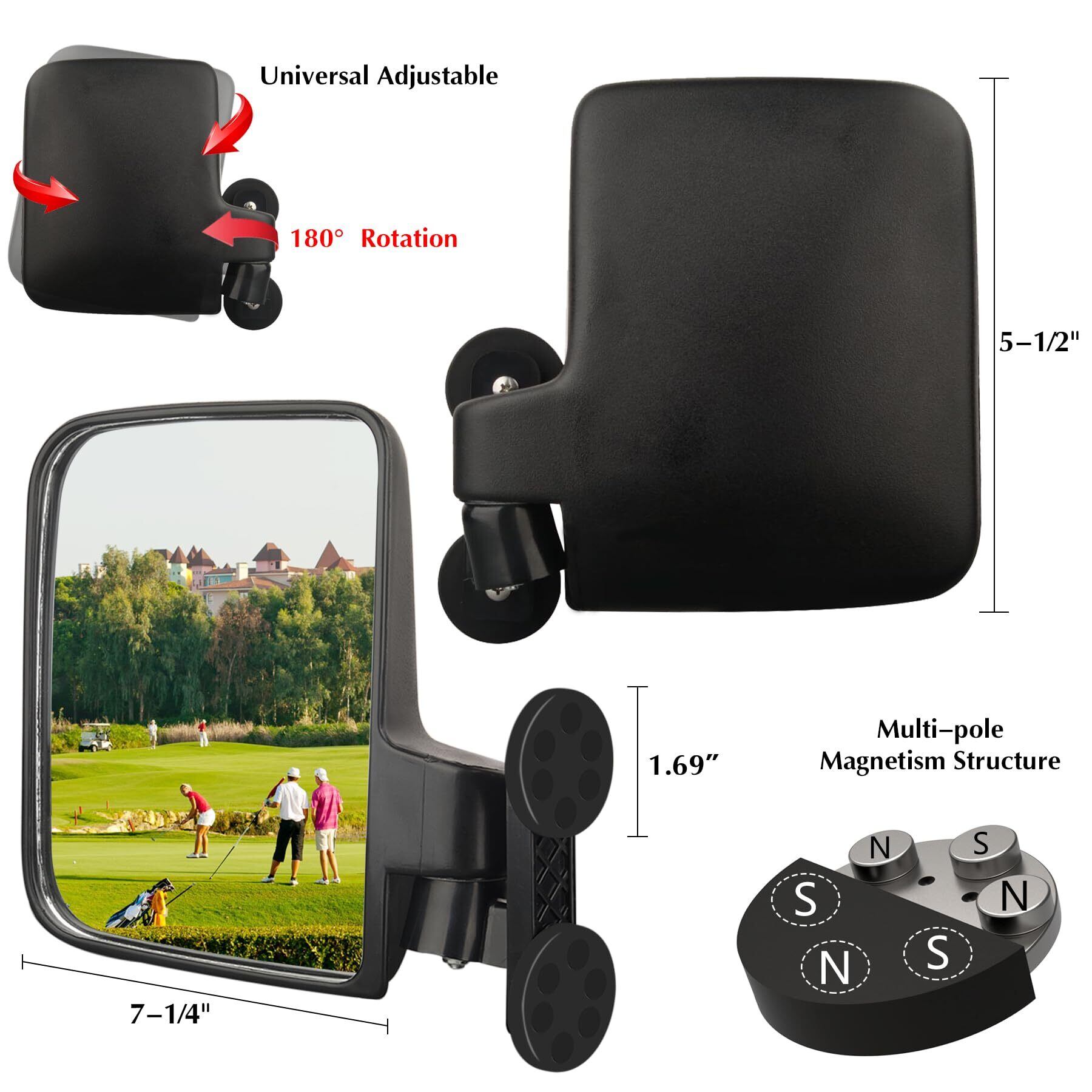 【滑り止めゴルフカートアクセサリー 穴あけ不要】トラクターミラー2個セット、マグネットベース付き右手ミラー、左手ミラー1個、ゴムコーティングマグネットはマグネットに保護層があり、塗装の損傷を防ぎます。