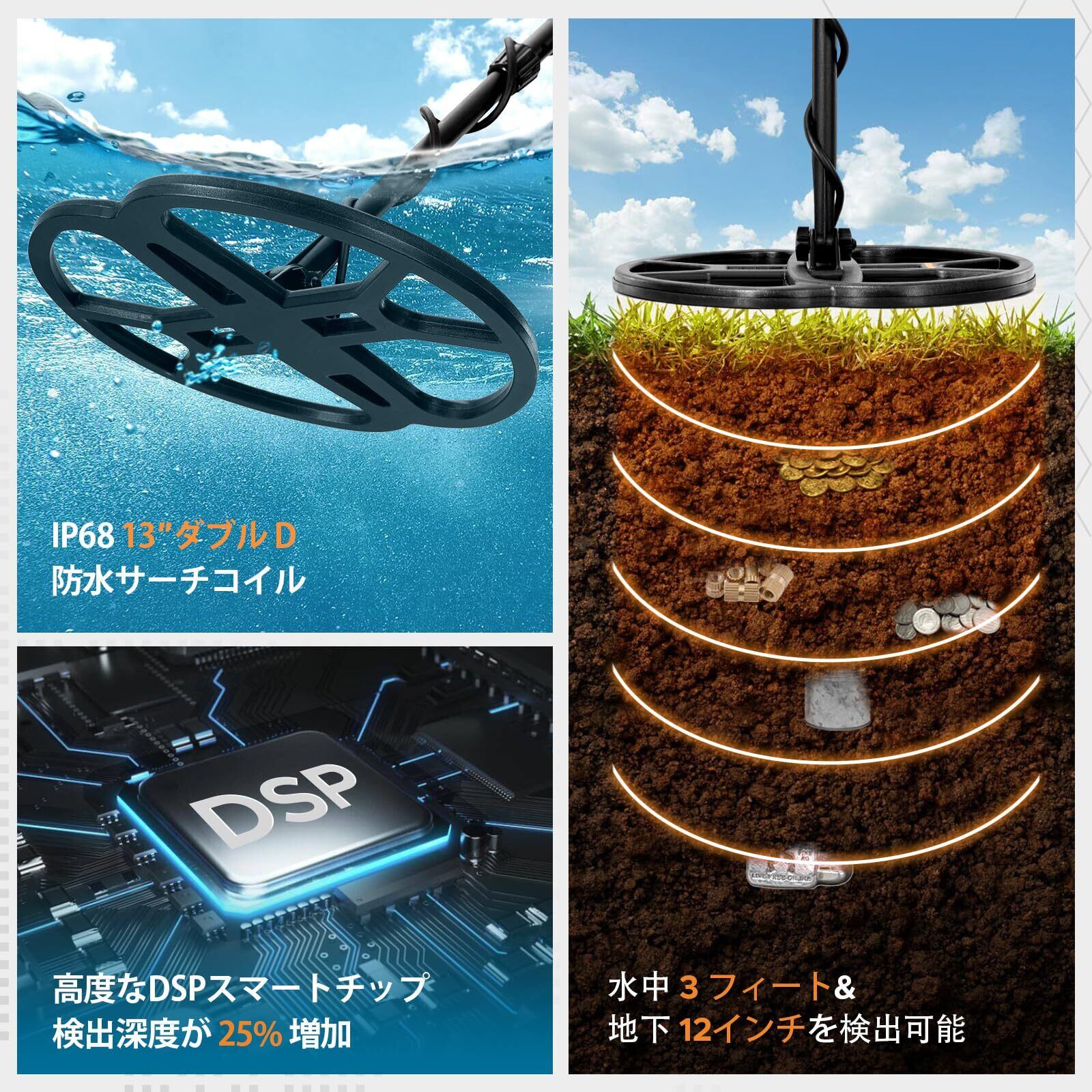 Hazlewolke ダブルD金属探知機 高感度 防水サーチコイル ピンポイント 識別モード LCDバックライトディスプレイ 宝探し ゴールド探知機