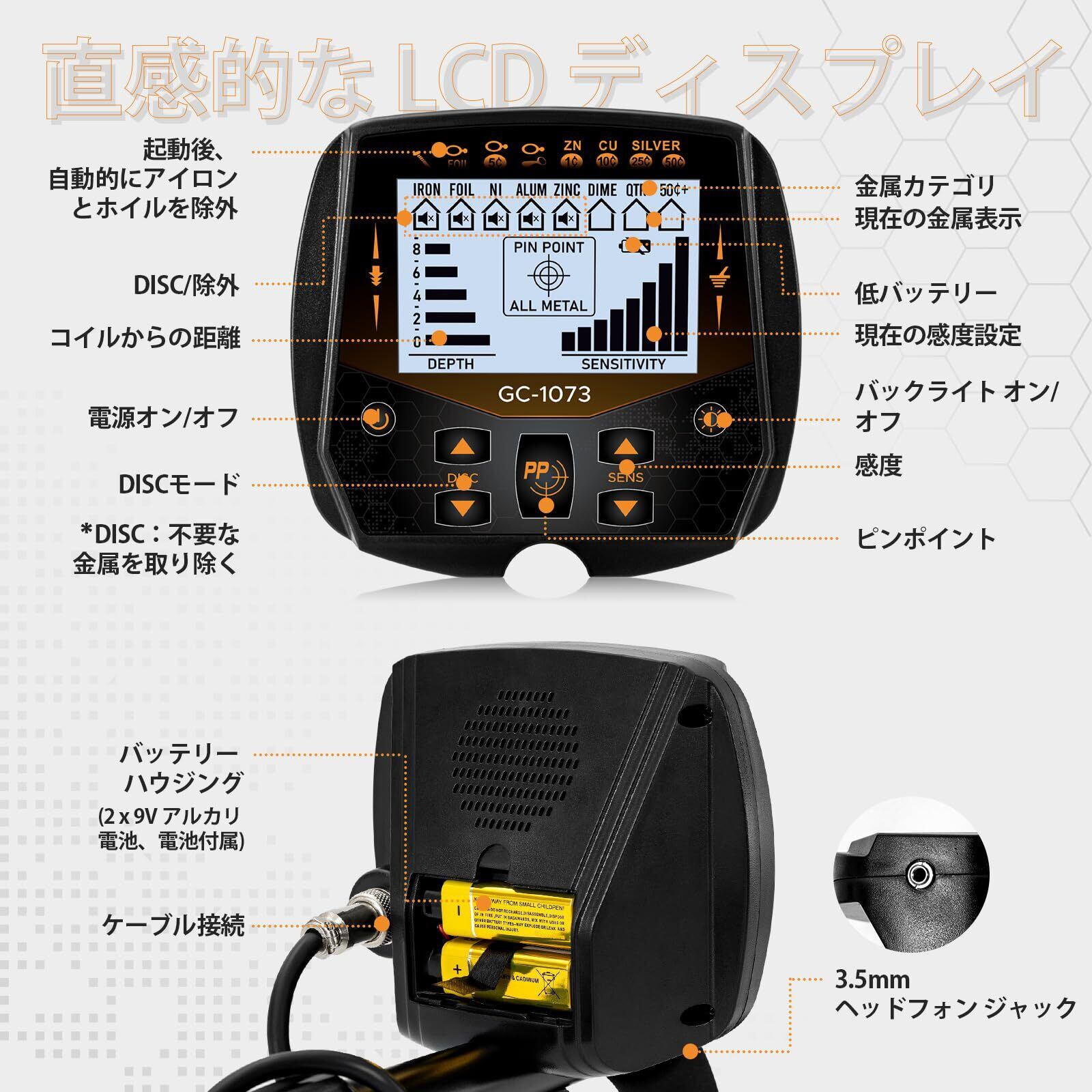 「防水DDコイル」一般的に、大きいコイルからの電磁パルス(EMP)は小さいコイルよりも深く浸透します。より大きなコイルを備えた 1073 金属探知機は、掃引ごとにより広い範囲をカバーできます。「ダブル D」コイル設計により、より広い電磁場も生成できるため、一定時間内により広いエリアを探索できます。これらのことから、正確かつ迅速に宝探し場所を見つけることが可能になります。
