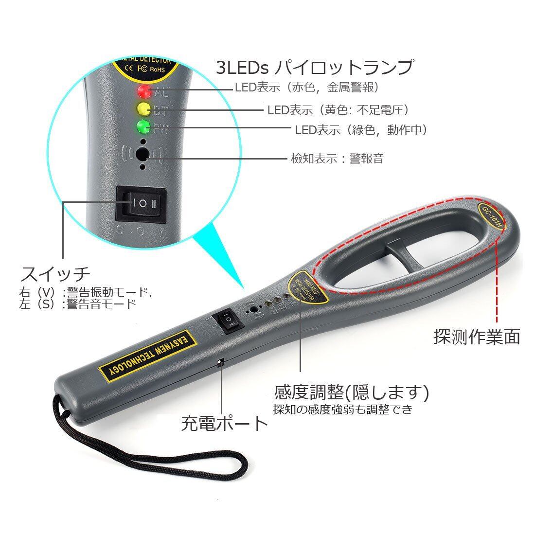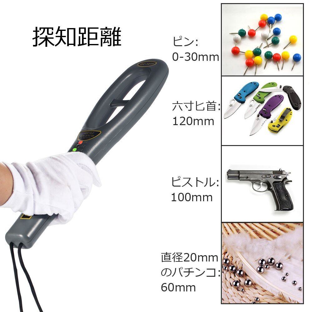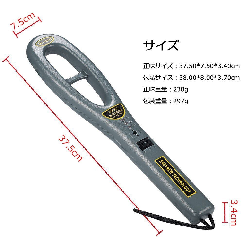 軽量ハンディ金属探知機,C-Timvasion ハンディ高感度 金属探知器 簡単操作 防犯 センサー 警告音 警告振動